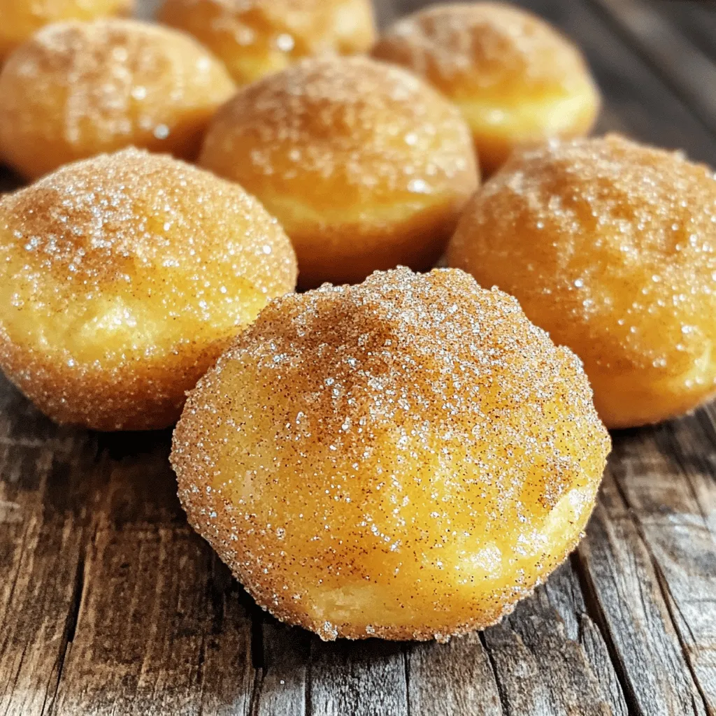 To make Air Fryer Cinnamon Sugar Donut Holes, you need: - 1 cup all-purpose flour - 1/2 cup granulated sugar - 1 tablespoon baking powder - 1/2 teaspoon ground cinnamon (plus more for sprinkling) - 1/4 teaspoon salt - 1/2 cup milk - 1/4 cup unsalted butter, melted - 1 large egg - 1 teaspoon vanilla extract - 1/4 cup granulated sugar (for coating) - 2 tablespoons unsalted butter, melted (for coating) You can use different ingredients if needed. Here are some tips: - Flour: Whole wheat flour works too, but it may change the texture. - Sugar: You can swap granulated sugar for brown sugar for a richer taste. - Milk: Any milk, like almond or oat milk, is fine. Just adjust for taste. - Butter: Coconut oil is a good plant-based alternative to butter. - Egg: Use a flaxseed meal (1 tablespoon mixed with 2.5 tablespoons water) for a vegan option. Store your ingredients properly to keep them fresh: - Flour: Keep it in a cool, dry place. A sealed bag or container works best. - Sugar: Store in an airtight container to prevent clumping. - Butter: Refrigerate it, and use within a couple of weeks. - Milk: Keep it chilled in the fridge and check the expiration date. By following these tips, you'll be set for a fun baking adventure! To make Air Fryer Cinnamon Sugar Donut Holes, start by gathering all your ingredients. You need: - 1 cup all-purpose flour - 1/2 cup granulated sugar - 1 tablespoon baking powder - 1/2 teaspoon ground cinnamon (plus more for sprinkling) - 1/4 teaspoon salt - 1/2 cup milk - 1/4 cup unsalted butter, melted - 1 large egg - 1 teaspoon vanilla extract - 1/4 cup granulated sugar (for coating) - 2 tablespoons unsalted butter, melted (for coating) Next, preheat your air fryer to 350°F (175°C) for about 5 minutes. This helps the donut holes cook evenly and become nice and fluffy. 1. In a large bowl, mix the flour, 1/2 cup sugar, baking powder, 1/2 teaspoon cinnamon, and salt together. Whisk until everything is well combined. 2. In another bowl, combine the milk, melted butter, egg, and vanilla extract. Mix until smooth. 3. Pour the wet mixture into the dry mixture. Stir gently until combined. It’s alright if the batter is a bit lumpy; too much mixing can make the donut holes tough. 4. Use a small cookie scoop or your hands to form balls about 1 inch in size. Place them on a parchment-lined tray. 5. Lightly spray the air fryer basket with non-stick cooking spray. Place the donut holes in a single layer without touching each other. 6. Air fry for 5-6 minutes. They should be golden brown. Insert a toothpick in the center to check if they are done; it should come out clean. 7. While they cook, mix 1/4 cup sugar with 1 teaspoon cinnamon in a small bowl for the coating. 8. Once the donut holes are ready, brush them with melted butter. Roll them in the cinnamon-sugar mix until they are fully coated. 9. Repeat the air frying for any remaining dough. Make sure they have enough space in the basket to cook evenly. - Always preheat your air fryer. This step helps create a nice texture. - Do not overcrowd the basket. Give each donut hole room to expand. - Keep an eye on cooking time. Every air fryer is different. Adjust as needed. - Use a toothpick to check for doneness. It should come out clean. - If you like them extra crispy, air fry for another minute or two, but watch carefully to avoid burning. To make great donut holes, follow these simple tips. First, preheat your air fryer for five minutes. This helps the donut holes cook evenly. Second, use a light spray of non-stick cooking spray. This prevents sticking and keeps them golden. When forming the dough balls, aim for about one inch in size. This size cooks well without burning. Avoid overcrowding the basket. Give each donut hole space to breathe. This ensures they cook and crisp up nicely. If your donut holes are too dry, you may have overmixed the dough. Mix just until combined. A few lumps are okay. If they burn, lower the cooking time. Check them at five minutes. You want a light golden brown color. If they stick to the basket, try using parchment paper next time. Lightly spray it with non-stick spray for best results. If they come out too soggy, they may need more air circulation. Make sure to not overcrowd them in the basket. To amp up flavor, try adding a pinch of nutmeg to the dough. It pairs nicely with cinnamon. You can also use brown sugar instead of white sugar for a richer taste. For a fun twist, add mini chocolate chips to the dough. To add more texture, sprinkle some crushed nuts on top after coating them in the cinnamon-sugar mixture. You can also experiment with different spices. Cardamom or ginger can add a unique flair. Enjoy your delicious creations! {{image_2}} You can have fun with flavors in your donut holes. Here are some tasty ideas: - Chocolate: Add 1/4 cup of cocoa powder to the dry mix. This gives a rich taste. - Pumpkin Spice: Swap out some flour for pumpkin puree. Add 1 teaspoon of pumpkin spice too. - Lemon Zest: Mix in 1 tablespoon of lemon zest for a fresh twist. It brightens the flavor. These simple changes make your donut holes unique and fun to eat! If you need gluten-free options, try using gluten-free flour. Brands like almond flour or coconut flour work well. You may need to adjust the liquid a bit. Start with the same amount of milk, then add more if needed. Check the texture of the dough. It should be soft but not sticky. Want a healthier option? You can use applesauce instead of butter. Replace half the butter with 1/4 cup of unsweetened applesauce. This keeps the donut holes moist and cuts down on fat. You can also use less sugar. Try reducing the granulated sugar by half. This makes them less sweet but still tasty. These variations let you enjoy Air Fryer Cinnamon Sugar Donut Holes in many ways. To keep your donut holes fresh, place them in an airtight container. This helps them stay soft and tasty. You can store them at room temperature for up to two days. If you want to keep them longer, try f
