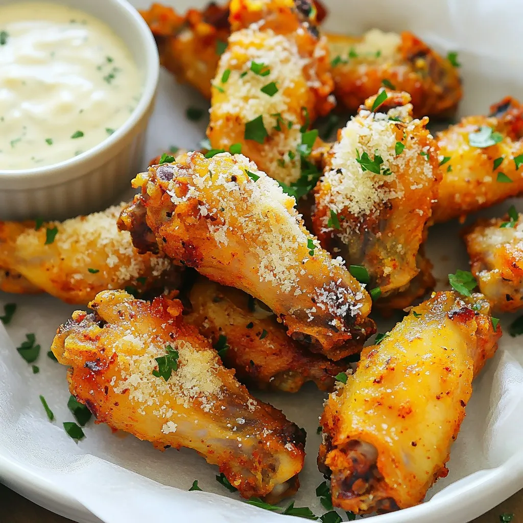 Crispy and flavorful chicken wings seasoned with garlic and Parmesan cheese, cooked to perfection in an air fryer.