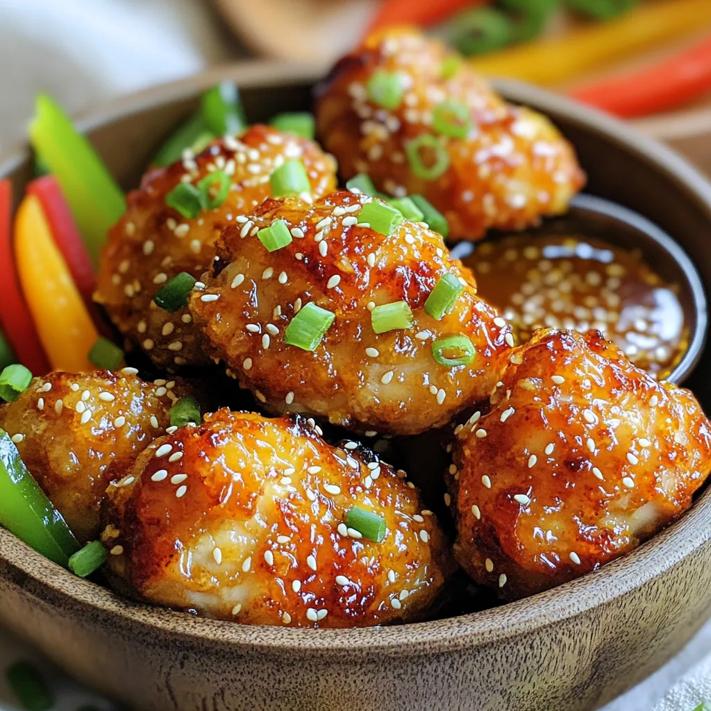 - 1 pound boneless, skinless chicken breast, cut into bite-sized pieces - 1/4 cup honey - 3 tablespoons soy sauce - 2 cloves garlic, minced - 1 teaspoon fresh ginger, grated - 1 tablespoon sesame oil - 1 tablespoon cornstarch - 1/2 teaspoon black pepper - 1 tablespoon green onions, chopped (for garnish) - Sesame seeds (for garnish, optional) The chicken breast must be fresh and tender. Cut the chicken into small, even pieces. This helps them cook quickly and evenly in the air fryer. Next, let's talk about the marinade. It combines sweet honey and savory soy sauce. The garlic adds a nice punch, while the ginger gives a warm, spicy note. Sesame oil brings a rich flavor, and cornstarch helps create a crispy texture. Black pepper adds just the right amount of heat. For garnishes, I like to use green onions. They add color and a fresh taste. Sesame seeds are optional but can add a nice crunch. You can even mix in colorful bell peppers when serving for a fun touch. This simple yet flavorful mix makes the chicken bites irresistible! To get started, we need to mix the marinade. In a large bowl, combine the following: - 1/4 cup honey - 3 tablespoons soy sauce - 2 cloves garlic, minced - 1 teaspoon fresh ginger, grated - 1 tablespoon sesame oil - 1/2 teaspoon black pepper - 1 tablespoon cornstarch Whisk these ingredients well until they form a smooth mixture. This blend will give your chicken a sweet and savory kick. Now, add the chicken breast pieces to the bowl. Toss them well to coat every piece with the marinade. For the best flavor, let it marinate for at least 30 minutes. If you have time, marinate for up to 2 hours in the fridge. This will allow the flavors to soak in deeply. Before cooking, we need to preheat the air fryer. Set it to 400°F (200°C) and let it warm up for about 5 minutes. This step ensures even cooking and nice crispiness. Next, place the marinated chicken in the air fryer basket. Make sure to arrange them in a single layer. This way, they will cook evenly. If you have a lot of chicken, cook in batches. Air fry the chicken bites at 400°F for 10 to 12 minutes. Shake the basket halfway through to help them cook evenly. The chicken should turn golden brown and be fully cooked. Check that the internal temperature reaches 165°F (75°C). Once done, take them out and let them rest for a couple of minutes. For a beautiful presentation, serve the chicken bites in a large bowl or on a nice platter. Garnish with chopped green onions and sprinkle sesame seeds on top for a pop of color. For extra fun, offer a small dish of honey-garlic sauce on the side for dipping. You can also add colorful bell pepper strips around the chicken for a vibrant touch. This makes your dish look appealing and inviting! To make your chicken bites crispy, follow these steps: - Use cornstarch: It helps create a nice crunch. Mix it well with your marinade. - Don’t crowd the basket: Lay the chicken pieces in a single layer. This helps them fry evenly. To avoid overcooking, keep an eye on the time. Cook for about 10-12 minutes. Check the chicken at 10 minutes. If it’s golden brown and the inside reaches 165°F, it’s done. Want to boost the flavor? Try adding extra spices or herbs. A pinch of cayenne pepper gives a nice kick. Fresh cilantro or basil can add a fresh twist. For marinating, let the chicken sit for at least 30 minutes, but longer is better. Marinate for up to 2 hours in the fridge. This will deepen the flavor and make the chicken even tastier. {{image_2}} You can switch up the protein in this recipe. Try using shrimp or tofu for a fun twist. Both will soak up the honey and garlic flavor well. For a vegetarian option, use cauliflower or chickpeas. These choices bring a hearty texture and absorb the marinade nicely. If you like it sweet and spicy, add a dash of red pepper flakes. This gives the chicken a nice kick. For a fresh twist, add citrus juice like lime or orange. A splash of lemon can brighten the dish too. You can also mix in fresh herbs like cilantro or basil. They bring a pop of flavor and color to your bites. To keep your Air Fryer Honey Garlic Chicken Bites fresh, store them in a sealed container. This helps keep moisture in and prevents drying out. They stay good in the fridge for up to three days. When reheating, place them in the air fryer at 350°F for about 5 minutes. This will help restore their crispy texture. If you prefer the microwave, heat them for 1-2 minutes, but they may not stay crispy. If you want to save some for later, freezing works great! First, let the chicken bites cool completely. Then, spread them in a single layer on a baking sheet and freeze for about an hour. This prevents them from sticking together. After that, transfer them to a freezer-safe bag or container. They can be frozen for up to three months. When you're ready to eat, thaw them overnight in the fridge. For reheating, use the air fryer at 400°F for 10 minutes to make them crispy again. You can make small changes to the recipe for a healthier dish. Here are a few ideas: - Use low-sodium soy sauce instead of regular. - Replace honey with maple syrup or agave for a lower glycemic index. - Swap sesame oil for olive oil to cut down on saturated fat. - Add more veggies like bell peppers or broccoli into the air fryer for extra nutrients. These changes keep the dish tasty while making it a bit lighter. Yes, you can use bone-in chicken, but it needs more time to cook. Here’s what to do: - Increase the cook time by about 10 to 15 minutes. - Check the internal temperature; it should still reach 165°F (75°C). - Cut the chicken into smaller pieces to help it cook evenly. This way, you'll enjoy the same flavors but with a different cut of chicken. Dipping sauces can enhance your chicken bites. Here are a few popular options: - Sweet chili sauce adds a nice kick. - Soy sauce mixed with sesame oil offers a classic taste. - Ranch dressing gives a creamy contrast. - Spicy mayo brings heat and richness. Fee