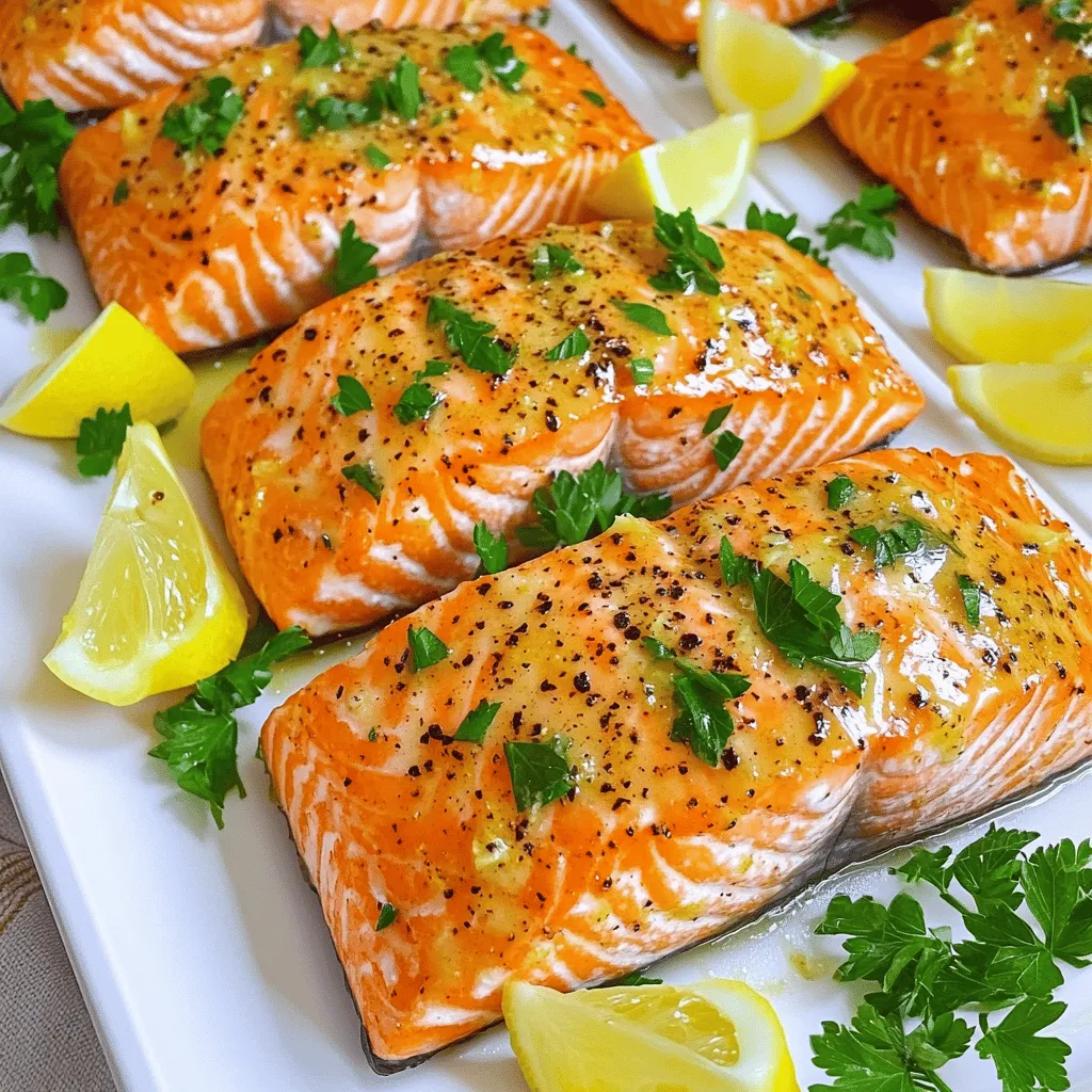 For a beautiful plate, serve the salmon on a white platter. Add lemon wedges beside the fish and sprinkle fresh parsley on top. This makes the dish look vibrant and inviting. Pair your salmon with sides like roasted vegetables, rice, or a fresh salad for a complete meal. These sides complement the flavors of the salmon perfectly.
