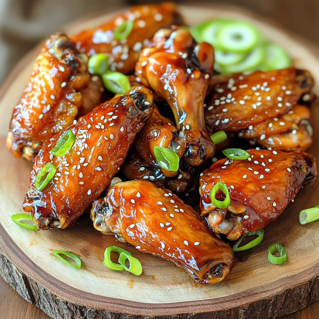 Garnish the wings with sesame seeds and sliced green onions before serving.
