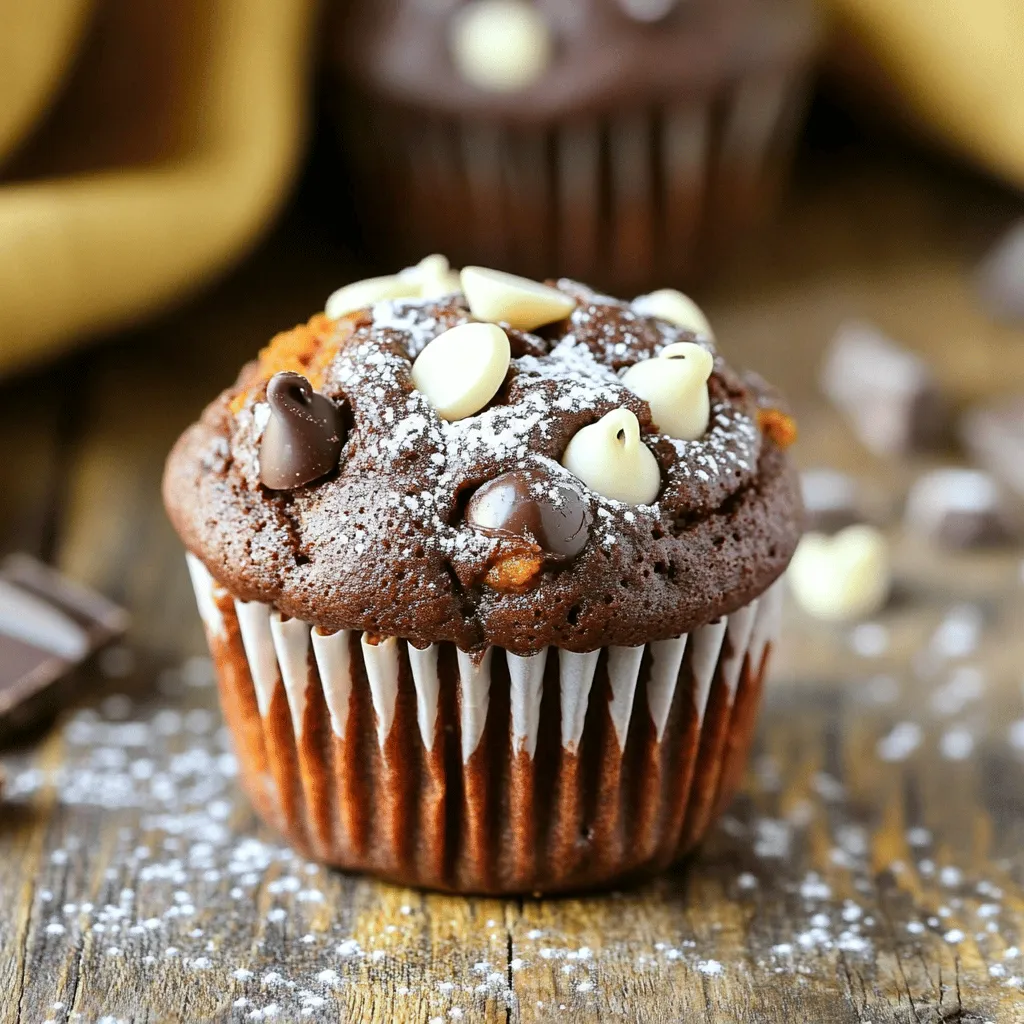- 1 cup pumpkin puree (canned or fresh) - 1/2 cup vegetable oil - 1 cup brown sugar, packed - 1/2 cup granulated sugar - 3 large eggs - 1 teaspoon vanilla extract - 1 3/4 cups all-purpose flour - 1/2 cup unsweetened cocoa powder - 1 teaspoon baking soda - 1/2 teaspoon baking powder - 1/2 teaspoon salt - 1 cup semi-sweet chocolate chips - 1/2 cup white chocolate chips (optional) When measuring ingredients, use dry measuring cups for flour and cocoa powder. Pack the brown sugar into the cup. For liquids like oil and pumpkin puree, use a liquid measuring cup. Use a scale if you have one for precise measurements, especially for flour. Each ingredient plays a key role in the muffin's taste and texture. If you need a substitute for pumpkin puree, try applesauce or mashed bananas. You can swap vegetable oil with melted coconut oil or melted butter for a richer flavor. For sugar, coconut sugar or honey can work as alternatives; just adjust the amount since honey is sweeter. If you want to skip the white chocolate chips, use more semi-sweet chocolate chips instead. First, you need to preheat your oven. Set it to 350°F (175°C). This helps the muffins bake evenly. While the oven heats up, get your muffin tin ready. You can line it with paper liners or spray it with non-stick spray. In a big bowl, mix pumpkin puree, vegetable oil, brown sugar, and granulated sugar. Add in three large eggs and one teaspoon of vanilla extract. Whisk it all together until smooth. In another bowl, sift together 1 3/4 cups of all-purpose flour, 1/2 cup of cocoa powder, one teaspoon of baking soda, 1/2 teaspoon of baking powder, and 1/2 teaspoon of salt. Slowly add the dry mix to the wet mix. Stir gently until just combined. Be careful not to overmix; this keeps the muffins light. Now, fold in one cup of semi-sweet chocolate chips. You can also add 1/2 cup of white chocolate chips for a fun twist. Now it’s time to fill the muffin cups. Divide the batter evenly, filling each cup about 2/3 full. This gives enough room for the muffins to rise. Place the muffin tin in the preheated oven. Bake for 18 to 20 minutes. To check if they are done, insert a toothpick into the center. If it comes out clean or with just a few crumbs, they are ready. After baking, let the muffins cool in the pan for about 5 minutes. This step helps them set. Then, transfer the muffins to a wire rack to cool completely. Enjoy them warm or later with a nice drink! To get soft and fluffy muffins, keep these tips in mind: - Do not overmix your batter. Stir until just combined. - Use room temperature eggs and pumpkin puree. This helps the batter mix well. - Fill each muffin cup about two-thirds full. This allows room for rising. - Bake at 350°F (175°C). This temperature helps the muffins rise evenly. To keep your muffins fresh, follow these steps: - Store in an airtight container at room temperature. This keeps them soft. - For longer storage, place them in the fridge. They can last up to a week. - You can also freeze them for up to three months. Just wrap them well. Serve your muffins in fun ways: - Warm them up in the microwave for a few seconds before serving. - Dust with powdered sugar for a sweet touch. - Drizzle with a simple chocolate glaze for extra flavor. - Pair with a cup of coffee or tea for a cozy treat. {{image_2}} You can make these muffins even more fun by adding nuts or dried fruits. Chopped walnuts or pecans add a nice crunch. If you love a bit of chew, try dried cranberries or raisins. Just toss in about half a cup after mixing in the chocolate chips. This will give your muffins a new flavor and texture. Want to make these muffins a bit healthier? You can swap some ingredients easily. Use applesauce instead of vegetable oil for less fat. You can also use whole wheat flour instead of all-purpose flour. It will add fiber and a nutty taste. Try using coconut sugar instead of brown sugar for a lower glycemic index. Feel free to change up the chocolate types for a twist! Dark chocolate chips give a richer taste. You can also mix in some milk chocolate chips for sweetness. For a fun touch, use white chocolate chips alone or with the semi-sweet ones. Each choice will change the flavor and make your muffins unique. To keep your muffins fresh, store them in an airtight container. Place parchment paper between layers to prevent sticking. This method keeps them soft for up to three days. If you live in a humid area, consider refrigerating them. Just remember to let them come to room temperature before serving. You can freeze these muffins for later enjoyment. Allow them to cool completely first. Wrap each muffin tightly in plastic wrap, then place them in a freezer bag. They last up to three months in the freezer. When you're ready to eat, just thaw them in the fridge overnight. To reheat your muffins, use the microwave for about 15-20 seconds. This warms them quickly and keeps them moist. If you prefer a crisp exterior, pop them in a toaster oven at 350°F for 5 minutes. Enjoy your warm, delicious muffins just like they came out of the oven! To make your muffins more chocolatey, you can add more cocoa powder. Use up to 3/4 cup instead of 1/2 cup. You can also increase the amount of semi-sweet chocolate chips to 1 1/2 cups. Adding a little espresso powder can also enhance the chocolate flavor without being too strong. You can use pumpkin pie filling, but it will change the taste. Pumpkin pie filling has added spices and sugar. This can make your muffins sweeter and spicier. If you choose to use it, reduce the sugar in the recipe. Using plain pumpkin puree is best for a classic taste. If your muffins are too dry, you can add more moisture. Try adding a little more pumpkin puree, about 1/4 cup. You can also add a splash of milk or an extra egg. Make sure not to overbake them, as this can also make muffins dry. Always check for doneness a few minutes early. This blog post covered how to make tasty muffins from start to finish. We looked at the key