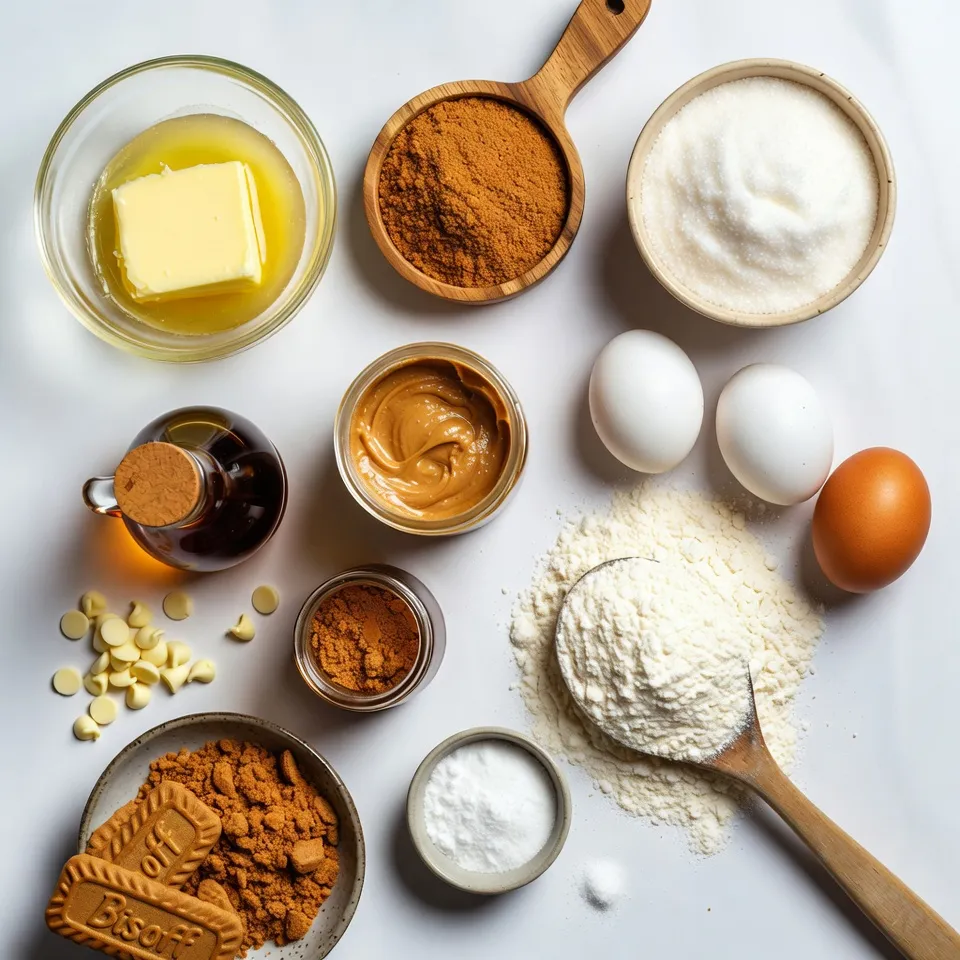 To make Biscoff Cookie Butter Blondies, you need some simple ingredients. Here’s what you need: