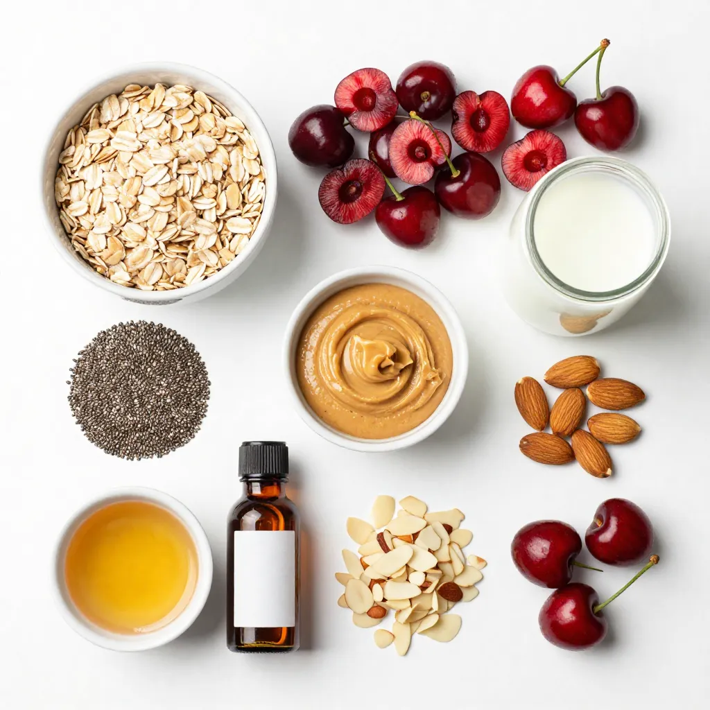 A delicious and nutritious overnight oats recipe featuring cherries and almond flavors.