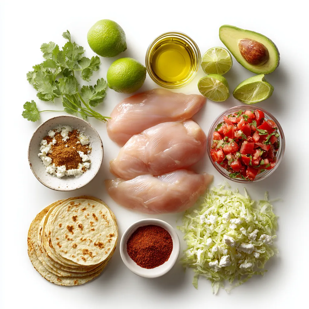 To make delicious chili lime chicken tacos, gather these key items: - 2 large chicken breasts, boneless and skinless - 2 tablespoons olive oil - 2 tablespoons chili powder - 1 teaspoon cumin - 1 teaspoon garlic powder - 1 teaspoon onion powder - 1 teaspoon paprika - Juice of 2 limes - Zest of 1 lime - Salt and pepper to taste - 8 small corn tortillas - 1 cup shredded lettuce - 1 cup diced tomatoes - 1 avocado, sliced These ingredients create a tasty balance of flavors. The chicken absorbs the marinade well, and the lime adds a fresh kick. You can add these items for extra flavor and texture: - ½ cup crumbled feta cheese - Fresh cilantro for garnish These optional ingredients can elevate your tacos. The feta adds creaminess, and cilantro brings a burst of freshness. To prepare your tacos, you will need: - Mixing bowl - Grill pan or skillet - Knife - Cutting board - Tongs Having the right tools makes cooking easier. A grill pan gives your chicken nice grill marks, making it look great on your plate. {{ingredient_image_1}} Start by making the marinade. In a bowl, mix together olive oil, chili powder, cumin, garlic powder, onion powder, paprika, lime juice, lime zest, salt, and pepper. This mix creates bold flavors for the chicken. Add the chicken breasts to the bowl and coat them well. Cover the bowl and place it in the fridge. Let it marinate for at least 30 minutes. For even better taste, marinate overnight. Next, heat a grill pan or skillet over medium-high heat. Once hot, add the marinated chicken breasts. Cook each side for about 6 to 7 minutes. You want the chicken to be cooked through and have nice grill marks. Use a meat thermometer to check. The internal temperature should reach 165°F. When done, remove the chicken and let it rest for about 5 minutes. This helps keep it juicy. After resting, slice the chicken into thin strips. Now, it’s time to build your tacos. Warm the corn tortillas in the same pan. Heat each one for about 30 seconds on each side until warm and slightly charred. Lay out the tortillas on a plate. Add a good amount of sliced chicken to each one. Top with shredded lettuce, diced tomatoes, and avocado slices. If you like, sprinkle on some crumbled feta cheese. Finish with fresh cilantro and a squeeze of lime juice. Enjoy your tasty chili lime chicken tacos! To make your marinade shine, use fresh lime juice and zest. This adds a bright kick. Mix the olive oil, chili powder, cumin, garlic powder, onion powder, paprika, salt, and pepper in a bowl. Coat the chicken breasts well. Let them hang out in the fridge for at least 30 minutes. If you can wait longer, marinate overnight. This makes the chicken super tasty. Heat your grill pan or skillet over medium-high heat. A hot pan gives good grill marks. Cook the marinated chicken for 6-7 minutes on each side. Check that the chicken reaches 165°F (75°C) inside. This guarantees it is safe to eat. After cooking, let the chicken rest for 5 minutes. Resting helps keep the juices inside. Then, slice the chicken into thin strips. Warm your corn tortillas in the same pan for a bit. Just 30 seconds on each side works well. Assemble your tacos by placing sliced chicken on each tortilla. Add shredded lettuce, diced tomatoes, and avocado slices. If you like, sprinkle on crumbled feta cheese. Finish with fresh cilantro and a squeeze of lime juice. Serve right away with lime wedges on the side. Enjoy every flavorful bite! Pro Tips Marinate Longer for More Flavor: For the best flavor, marinate the chicken for at least 2 hours, or overnight if possible. This allows the spices to penetrate the meat, making it juicier and more flavorful. Use Fresh Lime Juice: Always opt for fresh lime juice over bottled for a brighter and more vibrant flavor. The zest also adds an aromatic quality that enhances the overall taste of the tacos. Keep Ingredients Balanced: When assembling your tacos, ensure a balanced ratio of chicken to toppings. This will help each bite be flavorful and satisfying, preventing them from becoming too overloaded. Customize Your Toppings: Feel free to get creative with your toppings! Add pickled red onions, jalapeños, or a dollop of sour cream for extra flavor and texture. {{image_2}} To make your tacos spicier, add sliced jalapeños or crushed red pepper. You can mix these into the marinade or sprinkle them on top. The heat pairs well with the lime flavor. This twist gives you a tasty kick that many will love! If you want a veggie version, swap the chicken for marinated tofu or jackfruit. Tofu absorbs flavors well. Use the same marinade for a great taste. Cook it just like the chicken. Jackfruit gives a shredded texture. Both options make delicious tacos! Toppings can change your taco game! Try adding fresh corn, black beans, or pickled onions. Each adds a new flavor and texture. You can also use different cheeses like queso fresco or cheddar. Don’t forget a squeeze of lime juice for extra zest! If you have leftover tacos, store them in an airtight container. Keep the chicken and toppings separate. This helps keep the tortillas from getting soggy. You can store them in the fridge for up to three days. When you want to eat them, just reheat the chicken and warm the tortillas again. To freeze the chicken, wrap it tightly in plastic wrap. Then, place it in a freezer bag. This way, it stays fresh. You can freeze it for up to three months. When you’re ready to use it, thaw it in the fridge overnight. This keeps the chicken safe and tasty. To reheat the chicken, use either a microwave or a skillet. If using a microwave, place it on a plate and cover it. Heat it in short bursts until hot. If using a skillet, warm it over medium heat for a few minutes. Make sure the chicken is heated through. Then, warm the tortillas in the skillet for a few seconds to bring back their softness. Enjoy your tasty tacos again! You should marinate the chicken for at least 30 minutes. If you have more time, let it sit overnight. This gives the chi