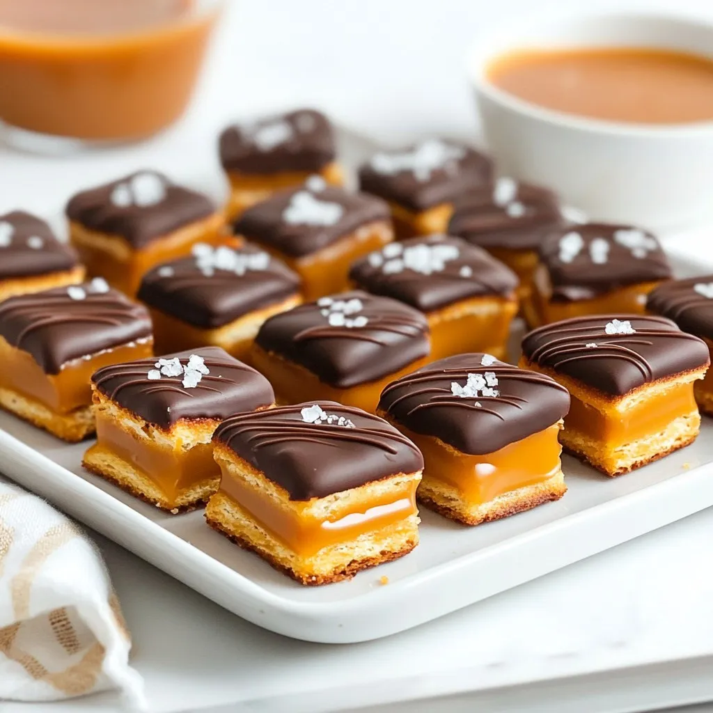 Delicious bites combining chocolate, caramel, and pretzels for a sweet and salty treat.
