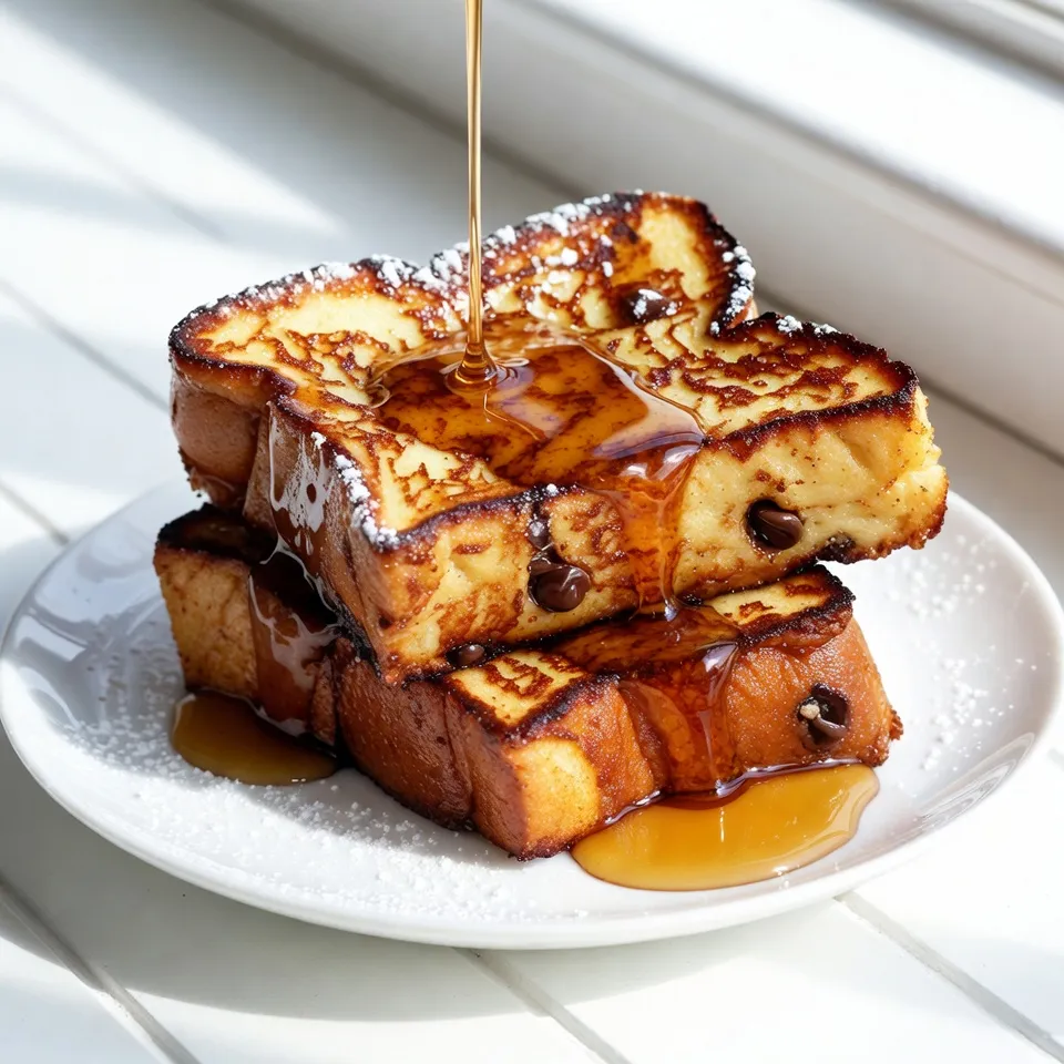 Indulge in a slice of heaven with this Chocolate Chip Brioche French Toast recipe! It's a decadent French toast recipe that transforms your breakfast into a gourmet experience. Perfect for an easy brioche breakfast, this delightful dish features chocolate chips and a drizzle of maple syrup for the ultimate chocolate chip breakfast ideas. Elevate your mornings and impress your guests! Save this recipe for your next brunch! #ChocolateChipBrioche #FrenchToastRecipe #BriocheBreakfast #MapleSyrup
