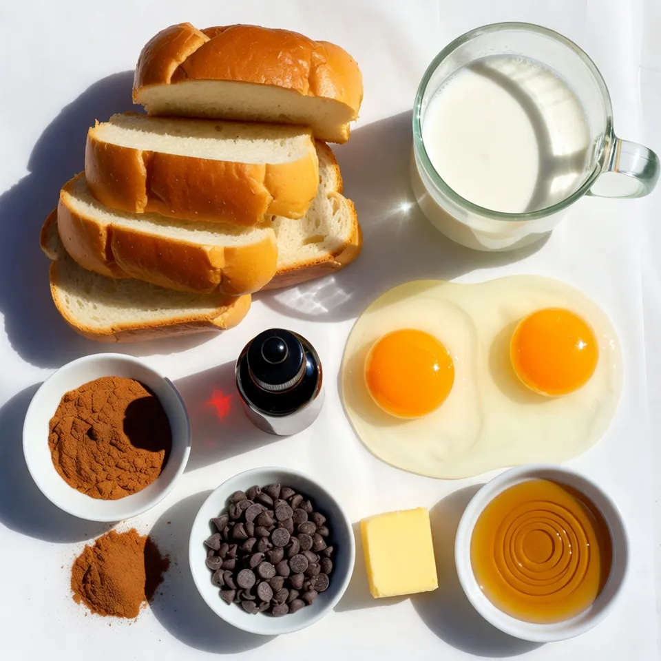 Each ingredient plays a role. The brioche bread is soft and sweet, perfect for soaking. Eggs and milk create a rich custard. Vanilla and cinnamon add warmth and flavor. Chocolate chips melt and make every bite special.