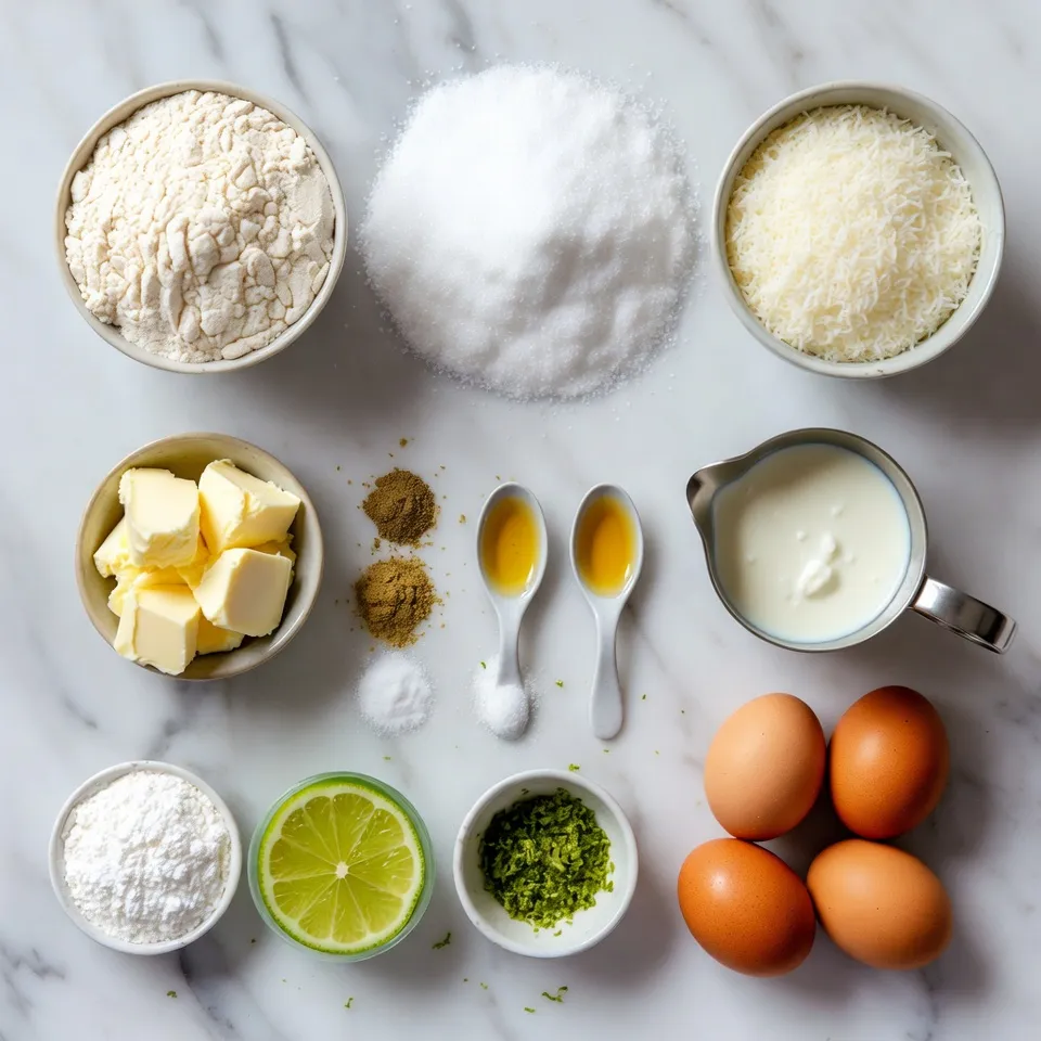 For the glaze, we need powdered sugar, lime juice, lime zest, and more shredded coconut for garnish. This glaze adds a lovely shine and extra flavor on top. It’s easy to make and adds a fun tropical touch.