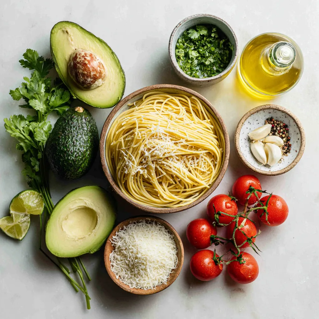 The main ingredients create a creamy and tasty dish. You start with pasta, either spaghetti or linguine. I love using ripe avocados because they make the sauce rich and smooth. Fresh cilantro adds a bright flavor that mixes well with the garlic. Lime juice gives it a nice tang. Olive oil helps blend everything together. Cumin adds a warm note, while salt and pepper enhance the taste.