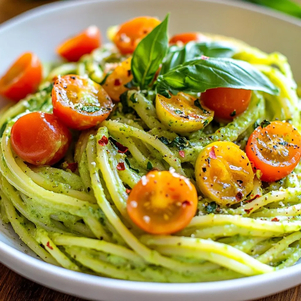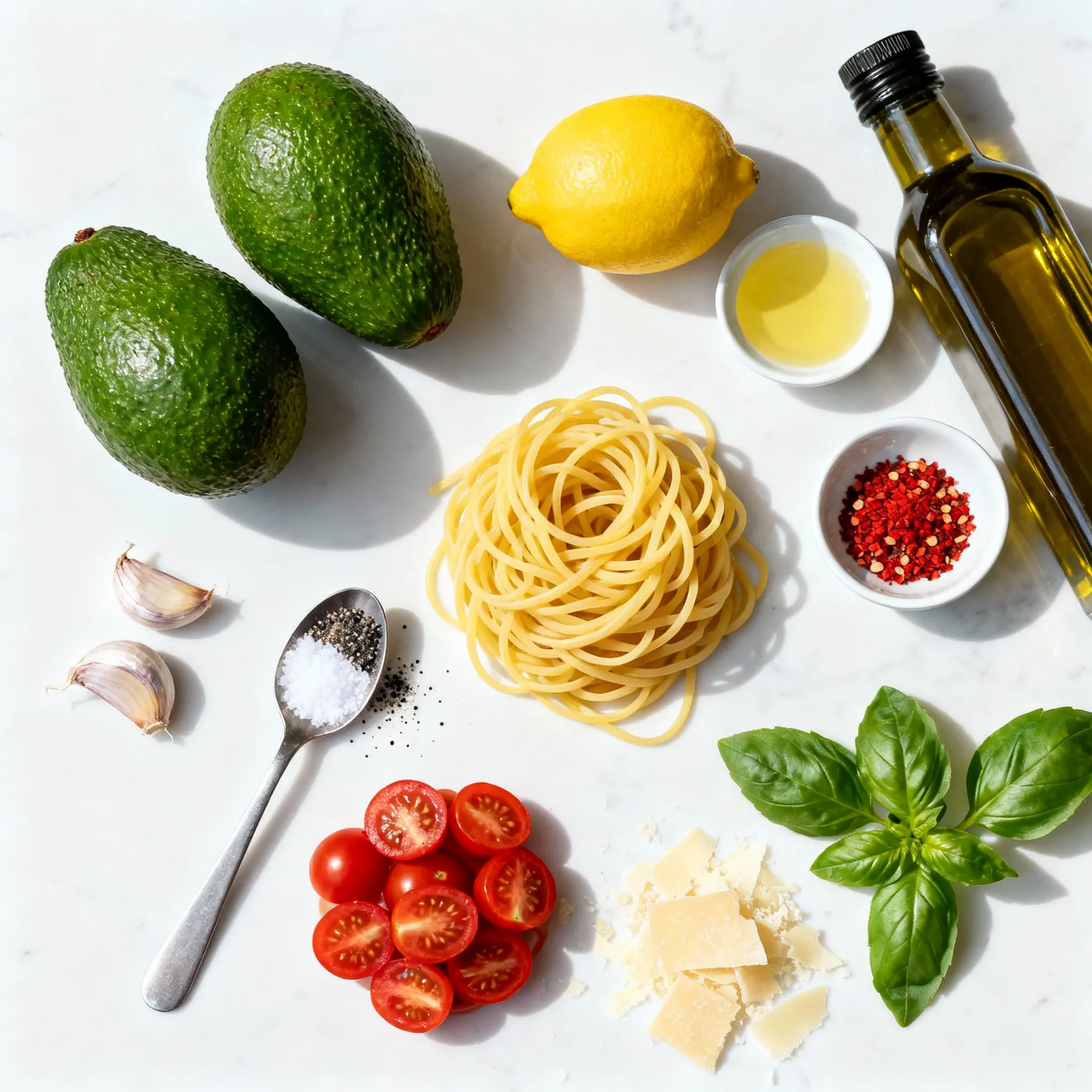 - 2 ripe avocados, pitted and peeled - 12 oz pasta of choice (spaghetti or penne work great) - 2 cloves garlic, minced - 1 tablespoon lemon juice - 1/4 cup extra virgin olive oil - 1/2 teaspoon salt - 1/4 teaspoon black pepper The heart of this dish is the ripe avocados. They give a creamy texture that makes the pasta feel rich without heavy cream. You can choose spaghetti or penne, depending on what you like. Garlic adds a nice flavor that pairs well with the avocado. The lemon juice brightens the taste, while olive oil makes it silky smooth. Use salt and black pepper to enhance all the flavors. - 1/4 teaspoon red pepper flakes (optional for heat) - 1/2 cup cherry tomatoes, halved - Grated Parmesan cheese (optional, for serving) If you want a little kick, add red pepper flakes. Cherry tomatoes bring a sweet burst that contrasts nicely with the creamy sauce. Grated Parmesan cheese adds a savory touch. You can skip it for a lighter dish or if you prefer it vegan. - Fresh basil leaves - Additional olive oil Garnish your pasta with fresh basil leaves for a pop of color and flavor. A drizzle of extra olive oil on top adds richness and makes the dish look fancy. These simple touches make your meal beautiful and delicious. {{ingredient_image_1}} - Start by boiling salted water in a large pot. - Add your pasta to the boiling water. Cook until it’s al dente, which means it should be firm to the bite. - Before draining, reserve about 1/2 cup of that pasta water. This water helps make the sauce creamy. - In a food processor, place the ripe avocados, minced garlic, lemon juice, olive oil, salt, black pepper, and red pepper flakes (if you want some heat). - Blend the mixture until it’s smooth and creamy. - If the sauce feels too thick, slowly add some reserved pasta water to reach the right consistency. - In the same pot where you cooked the pasta, add the drained pasta back in. - Pour the creamy avocado sauce over the pasta and mix it well, ensuring every piece gets coated. - Gently fold in the halved cherry tomatoes. This adds freshness and flavor to your dish. To get that perfect creamy texture, you need pasta water. This starchy water helps the sauce stick to the pasta. When you drain your pasta, save half a cup of this water. If your sauce is thick, add a little water to it. Blend until smooth for the best results. Use a food processor for a silky sauce. If you don’t have one, a blender works too. Just make sure to scrape down the sides to mix well. You can boost the flavor with some spices. Try adding a pinch of garlic powder or onion powder for extra depth. A dash of smoked paprika can also bring a nice twist. Fresh herbs, like parsley or cilantro, add brightness. Toss in some chopped basil along with the sauce for a fresh taste. You can also mix in lemon zest to give it a citrusy kick. For a lovely presentation, serve your pasta in shallow bowls. A drizzle of olive oil on top makes it look fancy. Add a sprinkle of red pepper flakes for a pop of color. Whole basil leaves on top can make it really stand out. Pair it with grilled chicken or shrimp for more protein. A side salad with fresh greens complements the meal well. Enjoy your vibrant dish! Pro Tips Choose Ripe Avocados: Make sure your avocados are ripe and slightly soft to the touch for the creamiest sauce. Use Fresh Ingredients: Fresh garlic and high-quality olive oil will enhance the flavor of your sauce significantly. Adjust Consistency: If your sauce is too thick, add the reserved pasta water gradually until you reach your preferred consistency. Enhance with Toppings: Don't skip the fresh basil and Parmesan cheese; they add wonderful flavor and visual appeal! {{image_2}} For a vegan twist on creamy avocado pasta, simply leave out the Parmesan cheese. This keeps the dish plant-based. You can add a nutty flavor by using nutritional yeast instead. This will give you that cheesy taste without dairy. Nutritional yeast is easy to find and adds a boost of nutrients, too. If you need a gluten-free option, choose gluten-free pasta. Many brands offer good choices that cook well. You can also try alternative sauces like a simple olive oil mix. This keeps the dish light yet flavorful, perfect for anyone with gluten needs. Want to change up the taste? Try adding spinach or kale for a green boost. These greens mix well with the creamy sauce. You can also incorporate nuts, like walnuts or pine nuts. They add a nice crunch and make the dish more filling. Mixing flavors keeps this pasta fresh every time you make it. You can store leftover creamy avocado pasta in the fridge for up to three days. Place the pasta in an airtight container to keep it fresh. This helps keep the flavors intact. Avoid using metal containers as they can react with the avocado. Glass or plastic containers work best. If you want to save some for later, you can freeze the avocado sauce. Place the sauce in a freezer-safe bag or container. Make sure to remove as much air as possible. You can freeze it for up to three months. When you’re ready to use it, thaw it overnight in the fridge. Reheat the sauce gently in a pan. For pasta, it’s best to cook fresh. Freezing cooked pasta can change its texture. If you want to save time, make the avocado sauce ahead of time. You can blend it and store it in the fridge for a quick meal. You can also pre-cook the pasta. Just cook it until al dente, drain it, and toss it with a little oil to prevent sticking. Store it in an airtight container, and it will be ready for your next meal! You can store creamy avocado pasta in the fridge for up to three days. After that, the avocado may brown. To keep it fresh, cover the pasta tightly. Use an airtight container for best results. Yes, you can make the avocado sauce in advance. Store it in the fridge for one day. Add a bit of lemon juice to help prevent browning. Make sure to seal it well to keep air out. If you want a different flavor, try using cooked pumpkin or silken tofu. Both can give a c