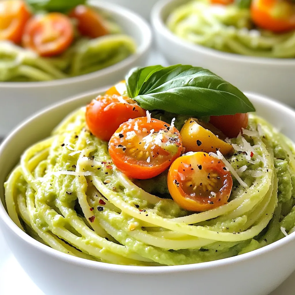 - 12 oz pasta (spaghetti or fettuccine) - 2 ripe avocados, pitted and scooped - 2 cloves garlic, minced - 1 lemon, juiced - ¼ cup olive oil - ½ cup fresh basil leaves - ¼ cup grated Parmesan cheese (or nutritional yeast for a vegan option) - Salt and pepper to taste - Red pepper flakes (optional, for heat) - Cherry tomatoes, halved (for garnish) - Extra basil leaves for garnish This creamy avocado pasta shines with fresh ingredients. You’ll want to choose your pasta type first. Spaghetti and fettuccine work well. I love the way fettuccine holds the sauce. Next, the star of the dish is the avocado. Use ripe avocados for that creamy texture. You’ll also need garlic for flavor. Fresh garlic adds a nice kick. Don’t forget the lemon juice! It brightens the dish and helps the avocado stay green. Olive oil adds richness and smoothness. Fresh basil leaves give depth and aroma. Grated Parmesan cheese enhances the taste. If you're vegan, swap it with nutritional yeast. You can spice things up with red pepper flakes if you like heat. Cherry tomatoes add a pop of color and sweetness. Extra basil leaves make the dish look fresh and appealing. Gather these ingredients, and you are ready to create a quick and tasty meal! {{ingredient_image_1}} 1. Start by bringing a large pot of salted water to a boil. This adds flavor to the pasta. 2. Add 12 ounces of your choice of pasta, like spaghetti or fettuccine. Cook it according to the package instructions. Aim for al dente, which means it should be firm but cooked through. 3. Once cooked, reserve 1 cup of that pasta water. This water is starchy and will help the sauce stick later. Drain the pasta and set it aside. 1. While the pasta cooks, grab your food processor. Add 2 ripe avocados, 2 minced garlic cloves, the juice of 1 lemon, ¼ cup olive oil, ½ cup fresh basil leaves, and ¼ cup grated Parmesan cheese. 2. Blend all these ingredients until the mixture is smooth and creamy. If it's too thick, slowly add some reserved pasta water, a tablespoon at a time, until you reach your desired consistency. 3. To ensure the sauce is silky, make sure to blend long enough. Scrape down the sides of the processor if needed. 1. Put the drained pasta back in the large pot. Pour the creamy avocado sauce over the pasta. 2. Gently toss the pasta and the sauce together. Use a spatula to coat all the noodles evenly. If the sauce feels too thick, add more reserved pasta water to loosen it. 3. Finally, season with salt, pepper, and red pepper flakes if you like a little heat. Mix well to combine all the flavors. To make your creamy avocado pasta look great, try these tips: - Plating Method: Serve the pasta in wide bowls. This gives a nice view of the dish. - Garnish Ideas: Top with halved cherry tomatoes for color. Add fresh basil leaves for a burst of flavor. Avocados are a powerhouse of nutrition. Here’s what you need to know: - Nutritional Profile: They are rich in healthy fats, fiber, and vitamins. One avocado has good fats that help your heart. - Diet Benefits: Adding avocados can improve skin health and aid digestion. They keep you full longer, which can help with weight management. Avoid these common pitfalls for the best results: - Overcooking Pasta: Be careful not to cook pasta too long. Aim for al dente to keep it firm and tasty. - Sauce Thickness: If your sauce is too thick, add some reserved pasta water. This helps it blend well with the pasta. Pro Tips Use Ripe Avocados: Ensure your avocados are perfectly ripe for the creamiest sauce. They should yield slightly to gentle pressure when squeezed. Reserve Pasta Water: Always save some pasta water before draining. This starchy water can help thin out your sauce and improve its adherence to the pasta. Add Freshness: For an extra burst of flavor, consider adding some lemon zest to the sauce for bright acidity and fragrance. Customize Your Greens: Feel free to mix in other herbs like parsley or cilantro along with the basil for a unique twist on the flavor profile. {{image_2}} You can easily make this dish vegan. To do this, replace the Parmesan cheese with nutritional yeast. Nutritional yeast adds a cheesy flavor without using dairy. You can also add ingredients like sun-dried tomatoes or olives. These will bring more depth to your dish. For gluten-free options, choose pasta made from rice or corn. Many brands offer great gluten-free spaghetti or fettuccine. When making the sauce, ensure all ingredients are gluten-free. This way, you can enjoy a creamy meal without worry. You can boost this pasta with protein. Adding chicken or shrimp makes it heartier. Cook these proteins separately and mix them in at the end. You can also add spices for more taste. Try fresh herbs like parsley or spices like paprika. These will take your dish to the next level. To keep creamy avocado pasta fresh, store it in the fridge. Use airtight containers. This helps keep flavors and textures intact. Make sure to seal them tightly to prevent air from getting in. Leftovers can last up to three days. Before eating, check for any signs of browning or off smells. When reheating, avoid drying out the pasta. You can use the microwave or stovetop. For microwave reheating, place pasta in a bowl. Add a splash of water to keep it moist. Heat in short bursts, stirring in between. For stovetop, add the pasta to a pan. Add a little olive oil or water, and heat over low until warm. Stir often to keep it creamy. You can freeze creamy avocado pasta, but it may change texture. If you want to freeze it, do so right after making. Use freezer-safe containers and leave space for expansion. When you are ready to eat, thaw overnight in the fridge. Reheat gently using the stovetop method to restore creaminess. Avoid refreezing once thawed. To keep your cut avocados fresh, store them in an airtight container. Press plastic wrap against the flesh to limit air exposure. You can also sprinkle a little salt on the cut side. This helps slow down browning. Lemon juice 