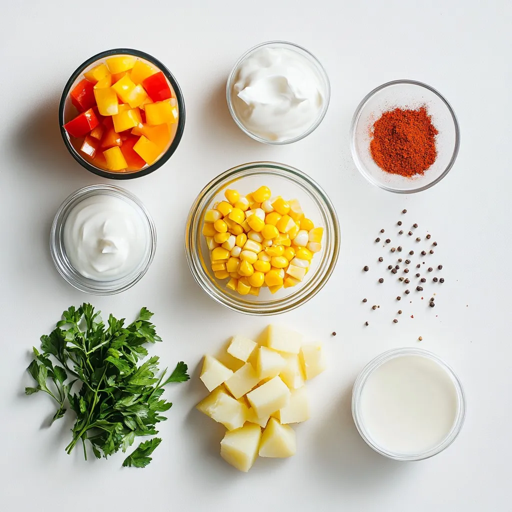 Start by gathering your vegetables. You need corn, onion, potatoes, and red bell pepper. If using fresh corn, cut the kernels off the cob. Chop the onion and dice the potatoes and bell pepper. It helps to have everything ready before you cook. This will make the cooking process smooth and quick.