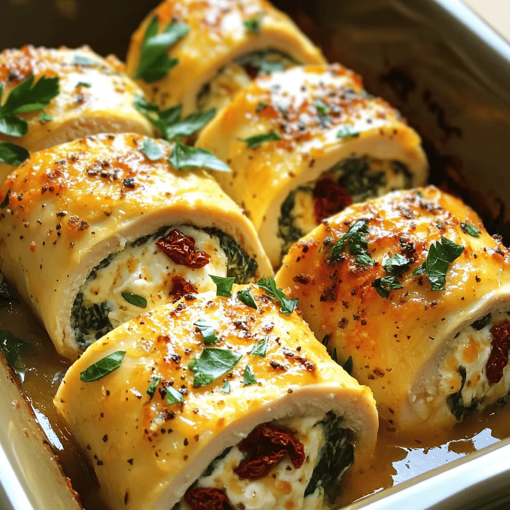 Start by preheating your oven to 375°F (190°C). This helps cook the chicken evenly. Grease a baking dish with a bit of olive oil. This keeps the roll-ups from sticking.