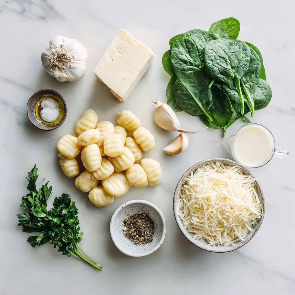 A delicious and creamy gnocchi dish made with garlic, Parmesan cheese, and optional spinach.