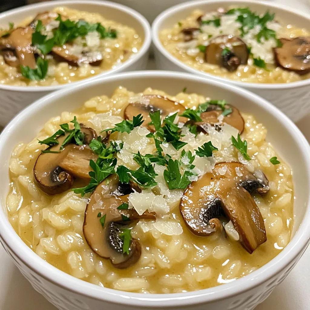 To make creamy mushroom risotto, gather these ingredients: - 1 cup Arborio rice - 4 cups vegetable broth - 1 cup mushrooms (button or cremini), sliced - 1 small onion, finely chopped - 2 cloves garlic, minced - 1/2 cup heavy cream - 1/2 cup grated Parmesan cheese - 2 tablespoons olive oil - 2 tablespoons butter - Salt and pepper to taste - Fresh parsley, chopped (for garnish) You can swap some ingredients if needed: - Arborio rice: Use Carnaroli or Vialone Nano for a similar texture. - Vegetable broth: Chicken broth works well for added flavor. - Heavy cream: Try sour cream or Greek yogurt for a lighter option. - Parmesan cheese: Nutritional yeast is a good vegan substitute. - Fresh parsley: Use thyme or chives for a different herb touch. Here’s what you need for smooth cooking: - Large skillet for sautéing - Saucepan to warm broth - Wooden spoon for stirring - Ladle for adding broth - Measuring cups and spoons for accuracy - Sharp knife for chopping - Cutting board for prep With these ingredients and tools, you are all set to make a rich, creamy mushroom risotto. Enjoy the cooking! {{ingredient_image_1}} To make creamy mushroom risotto, start by warming your vegetable broth in a saucepan. Keep it warm on low heat. In a large skillet, heat 2 tablespoons of olive oil and 1 tablespoon of butter over medium heat. Add 1 small chopped onion and cook it for 3-4 minutes until it turns clear. Next, add 2 minced garlic cloves and 1 cup of sliced mushrooms. Cook this mix for 5-7 minutes until the mushrooms soften and release their juice. Now, add 1 cup of Arborio rice to the skillet. Stir it for 2-3 minutes. This helps the rice soak in all the flavors. Begin adding the warm vegetable broth, one ladle at a time. Stir the rice while adding the broth. Wait until most of the liquid is gone before adding more. This process takes about 20 minutes. When the rice is creamy and slightly firm, reduce the heat to low. Stir in 1/2 cup of heavy cream and the last tablespoon of butter. Mix in 1/2 cup of grated Parmesan cheese, and season with salt and pepper. To get that perfect creamy texture, always use Arborio rice. This rice type has high starch, which helps create creaminess. Stirring continuously is key; it helps release the starch from the rice. Also, adding broth slowly lets the rice absorb the liquid fully. This method keeps the risotto creamy, not watery. If your risotto feels too thick, add a bit of warm broth to loosen it. One common mistake is adding all the broth at once. This can lead to mushy rice. Remember to add it slowly. Another mistake is not stirring enough. Stirring is vital for a creamy texture. Avoid cooking on high heat; it can burn the rice. Lastly, don’t skip the cheese and cream. They add flavor and richness to your risotto. To make the best risotto, always use Arborio rice. This rice is starchy and creamy. Heat your broth and keep it warm. This helps the rice cook evenly. Stir the rice often. This helps release the starch. Add broth one ladle at a time. Wait until it soaks up before adding more. This keeps the risotto creamy and rich. You can make risotto ahead of time. Just cook it until it's almost done. Let it cool, then store it in the fridge. When you are ready, reheat it on low heat. Add a splash of broth to bring back its creaminess. Stir until it warms through. This way, you can enjoy it at your own pace. Serve your risotto in wide bowls for a nice look. Top it with extra Parmesan cheese. A drizzle of olive oil adds flavor and shine. You can also sprinkle fresh parsley for color. For a twist, add some cooked chicken or shrimp. Serve with a side salad for a complete meal. Pro Tips Use Warm Broth: Always keep your broth warm while cooking risotto. Adding cold broth can shock the grains and affect the cooking process. Stir Constantly: Stirring helps release the starch from the rice, creating that creamy texture risotto is known for. Don't skip this step! Experiment with Mushrooms: Try different types of mushrooms for varied flavors. Porcini, shiitake, or even wild mushrooms can elevate your dish. Let it Rest: Allowing the risotto to sit for a few minutes after cooking helps the flavors meld together beautifully before serving. {{image_2}} To make a vegan creamy mushroom risotto, replace the heavy cream and cheese. Use coconut cream for richness. Nutritional yeast adds a cheesy flavor. You can also use cashew cream for a smooth texture. These swaps keep the dish creamy and delicious without dairy. For gluten-free risotto, Arborio rice is naturally gluten-free! Just ensure your vegetable broth is also gluten-free. This way, you can enjoy a creamy meal without worry. Always check labels to avoid hidden gluten in processed broth. You can change the flavor of your risotto with herbs or different cheeses. Try adding thyme or rosemary for a fresh taste. For cheese lovers, swap Parmesan for pecorino or goat cheese. These choices can enhance the dish and make it unique. A little lemon zest adds brightness, too! To store leftover risotto, first let it cool. Place it in an airtight container. Make sure to cover it well to keep it fresh. In the fridge, it can last up to three days. If you notice any change in smell or texture, it's best to throw it away. When reheating risotto, add a splash of broth or water. This helps it regain its creamy texture. Heat it in a pan over low heat. Stir often to prevent sticking. You can also use a microwave, but be careful. Heat it in short bursts, stirring in between. To freeze risotto, portion it into small containers. Leave space at the top for expansion. It can last up to three months in the freezer. When ready to enjoy, thaw it overnight in the fridge. Then, reheat as described earlier. This way, you still get a tasty meal! The best rice for risotto is Arborio rice. This short-grain rice has a high starch content. This gives risotto its creamy texture. You can also use Carnaroli or Vialone Nano. Both offer a great texture and flavor. Yes, you ca