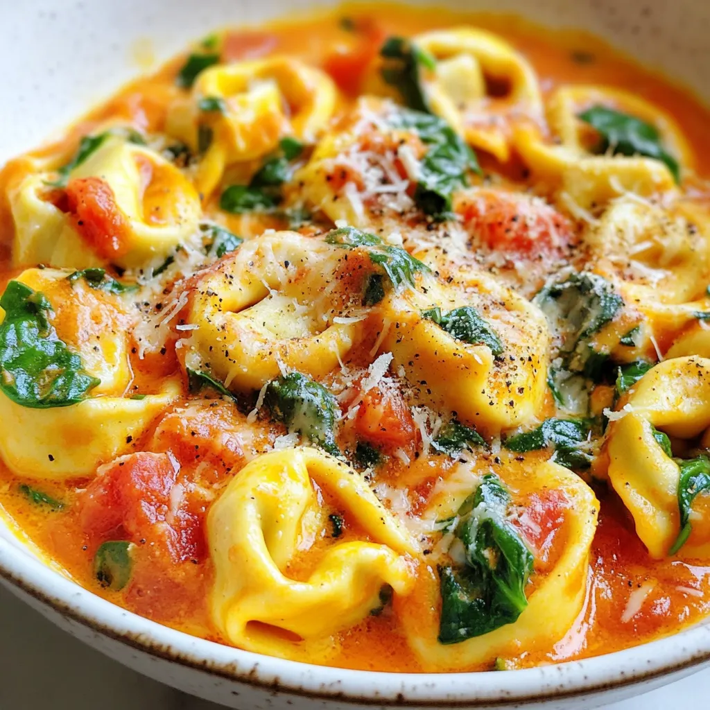 To make creamy tomato tortellini, you need the following: - 9 oz cheese tortellini (fresh or frozen) - 1 tablespoon olive oil - 3 cloves garlic, minced - 1 can (14 oz) diced tomatoes with herbs - 1 cup heavy cream - 1 cup fresh spinach - ½ cup grated Parmesan cheese - 1 teaspoon dried basil - Salt and pepper to taste These ingredients create a rich, creamy dish that is both tasty and easy to prepare. While the dish is great on its own, you can add some fun toppings: - Fresh basil leaves for garnish - Extra grated Parmesan cheese - A sprinkle of red pepper flakes for heat These garnishes can elevate the dish and add fresh flavors. If you need to swap out any ingredients, here are some ideas: - Use vegetable broth instead of olive oil for sautéing. - Swap heavy cream for half-and-half or a plant-based cream. - Try spinach with kale or arugula for a different green. - Use any type of cheese tortellini you like. These substitutions keep the dish easy and adaptable for your needs. {{ingredient_image_1}} First, boil water in a large pot. Add salt for flavor. Once the water boils, add 9 oz of cheese tortellini. Follow the package directions for cooking time. Fresh tortellini usually takes 3-5 minutes, while frozen might need a bit longer. When they float, they are ready. Drain them well and set aside. In a large skillet, heat 1 tablespoon of olive oil over medium heat. Add 3 cloves of minced garlic. Sauté for about 1 minute. You want it to smell good but not brown. This step adds a nice flavor to your dish. Pour in a 14 oz can of diced tomatoes with herbs. Stir well to mix the garlic and tomatoes. Let this simmer for about 5 minutes. After that, add 1 cup of heavy cream. Stir gently and let it simmer again. Add 1 teaspoon of dried basil, salt, and pepper to taste. This cream sauce will be rich and tasty. Now, gently add the drained tortellini into the skillet. Fold them into the creamy tomato sauce. Make sure each piece gets coated. Then, add 1 cup of fresh spinach. Cook for another 2-3 minutes until the spinach wilts down. Finally, sprinkle ½ cup of grated Parmesan cheese on top. Stir until it melts into the sauce. Your creamy tomato tortellini skillet is now ready to enjoy! To make a great creamy tomato sauce, start with good tomatoes. Use canned diced tomatoes with herbs for more flavor. Sauté the garlic first; this brings out its taste. Add the cream slowly, and stir well as it heats. This helps create a smooth sauce. If you want a thicker sauce, simmer it longer. You can also add a little pasta water to adjust the texture. When cooking tortellini, use a large pot of boiling water. This helps keep the pasta from sticking together. Follow the package instructions for the best cooking time. Fresh tortellini cooks faster than frozen. Taste a piece to check if it’s done; it should be soft but not mushy. Drain it well, and remember to save some cooking water for the sauce if needed. Serve your creamy tomato tortellini with a side of garlic bread. A fresh salad with greens and a light vinaigrette pairs well too. You can top it with extra Parmesan for a cheesy kick. For a colorful touch, add fresh basil leaves as a garnish. Enjoy your meal with a glass of white wine for a perfect match! Pro Tips Use Fresh Ingredients: For the best flavor, opt for fresh spinach and high-quality diced tomatoes. Fresh ingredients can elevate the dish significantly. Adjust Creaminess: If you prefer a lighter dish, you can substitute half of the heavy cream with chicken or vegetable broth, retaining some cream for richness. Flavor Boost: Add a pinch of red pepper flakes to the sautéed garlic for a subtle heat that complements the creamy sauce. Storing Leftovers: If you have leftovers, store them in an airtight container in the fridge. Reheat gently on the stove with a splash of water or broth to loosen the sauce. {{image_2}} You can boost the protein in your creamy tomato tortellini skillet by adding meat. Chicken works great. Simply cook diced chicken in the skillet before adding the garlic. Ground turkey or beef also adds flavor. For a quick option, use cooked sausage. Just slice it and mix it in with the tortellini. For a vegetarian twist, you can skip the meat and add more veggies. Try bell peppers, zucchini, or mushrooms. For a vegan option, substitute heavy cream with coconut milk or cashew cream. Use vegan cheese instead of Parmesan. This keeps the dish creamy and rich without dairy. Adding herbs and spices can take your dish to the next level. Fresh basil adds a bright taste. You can also use oregano or thyme for a savory touch. For a little heat, add red pepper flakes. This will give your dish a spicy kick. Don't forget to taste as you go to find your perfect balance! To store leftovers, let the dish cool completely. Use an airtight container to keep it fresh. It will last in the fridge for about 3 to 4 days. Label your container with the date for easy tracking. When you are ready to eat, reheat the dish in a skillet. Add a splash of water or cream to keep it creamy. Stir often over medium heat until warm. You can also microwave it in a bowl. Heat for 1 to 2 minutes, stirring halfway through. If you want to freeze it, use a freezer-safe container. The dish can be frozen for up to 2 months. Make sure to separate the tortellini and sauce if possible. This helps keep the texture better when you thaw it. To cook, thaw overnight in the fridge, then reheat as noted above. Yes, you can use dried tortellini. Just remember that cooking times will change. Dried tortellini usually takes longer to cook than fresh. Check the package for exact times. It is best to cook it until it is tender. Then, you can follow the rest of the recipe as usual. To spice up your creamy tomato tortellini skillet, try adding red pepper flakes. Start with a pinch and add more if you like. You can also use spicy sausage or jalapeños for heat. If you love bold flavors, consider adding a dash of hot sauce. This will give your dish a nice 