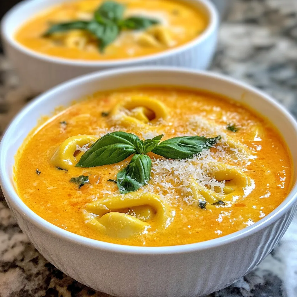 To make a rich and flavorful creamy tomato tortellini soup, gather these main ingredients: - 2 tablespoons olive oil - 1 medium onion, diced - 3 cloves garlic, minced - 1 can (28 oz) crushed tomatoes - 4 cups vegetable broth - 1 teaspoon dried basil - 1 teaspoon dried oregano - 1/2 teaspoon red pepper flakes (optional) - 9 oz fresh cheese tortellini - 1 cup heavy cream - Salt and black pepper to taste - Fresh basil leaves, for garnish - Grated Parmesan cheese, for serving These ingredients create a thick and comforting soup. The fresh tortellini adds a nice texture, while the crushed tomatoes give it a tasty base. You can enhance your soup with these optional ingredients: - Red pepper flakes for heat - Fresh herbs like thyme or parsley - A splash of lemon juice for brightness Adding these ingredients can boost flavor. The red pepper flakes bring some warmth, while fresh herbs add brightness to the dish. If you don’t have some ingredients, here are some easy swaps: - Use any type of broth instead of vegetable broth. - Swap heavy cream for coconut milk for a lighter option. - Replace tortellini with any small pasta like ditalini or orzo. These substitutions can help you use what you have on hand. They still keep the soup delicious and comforting. {{ingredient_image_1}} Start by heating 2 tablespoons of olive oil in a large pot over medium heat. Add 1 medium diced onion and sauté for about 5 minutes. You want it to turn clear and soft. Next, add 3 minced cloves of garlic. Sauté this for one more minute. You will smell a great aroma! Then, pour in one 28-ounce can of crushed tomatoes and 4 cups of vegetable broth. Stir them well to mix. Now, add 1 teaspoon of dried basil, 1 teaspoon of dried oregano, and 1/2 teaspoon of red pepper flakes if you like some heat. Bring this to a gentle simmer and let it cook for about 10 minutes. This step blends all the flavors nicely. After the soup simmers, it's time to add the star of the dish! Toss in 9 ounces of fresh cheese tortellini. Cook them according to the package directions, which usually takes about 4 to 5 minutes. Watch closely! The tortellini will float to the top when they are ready. Once the tortellini is cooked, reduce the heat to low. Stir in 1 cup of heavy cream to make it rich and creamy. Let it warm for another 2 to 3 minutes. Now, taste the soup and add salt and black pepper to your liking. To serve, ladle the soup into bowls. Top each bowl with fresh basil leaves and a sprinkle of grated Parmesan cheese. Enjoy every spoonful of this rich, flavorful meal! To get sweet, soft onions, heat your olive oil first. Use medium heat. Add the diced onion and cook for about five minutes. Stir often until the onion turns clear. Then, add the minced garlic. Cook it for about one minute. This step makes your soup smell amazing. To make your soup creamy, add heavy cream at the end. After cooking the tortellini, reduce the heat to low. Stir in the cream slowly. This keeps the cream from curdling. Make sure to warm it for two to three minutes. Taste the soup before serving. Adjust salt and pepper as needed for balance. You can add a few ingredients to boost the flavor. Try adding a splash of balsamic vinegar for tang. Fresh herbs, like parsley or thyme, add a nice touch. If you like spice, increase the red pepper flakes. For a savory kick, sprinkle in some grated Parmesan cheese. Each of these tweaks makes the soup unique and delicious. Pro Tips Use Fresh Ingredients: The quality of your tomatoes and tortellini can make a huge difference in flavor. Opt for fresh tortellini and high-quality canned tomatoes for the best results. Adjust the Creaminess: If you want a lighter soup, consider using half-and-half instead of heavy cream, or reduce the amount of cream to suit your taste. Customize Your Herbs: Feel free to experiment with fresh herbs like thyme or parsley for added flavor. Fresh herbs should be added at the end to maintain their vibrant taste. Make It Ahead: This soup can be made ahead of time and stored in the refrigerator for up to three days. Just add the cream when reheating to keep it fresh and creamy. {{image_2}} To make a vegan version of this soup, swap the heavy cream for coconut milk or a nut cream. Both options add a creamy texture without dairy. Choose vegan tortellini filled with spinach or mushrooms. Use vegetable broth to keep it plant-based. This version keeps the rich, tomato flavor but is friendly for vegans. You can boost the soup's nutrition by adding veggies. Try chopping carrots, zucchini, or spinach. Add them when you pour in the crushed tomatoes and broth. Cook them until tender. You can also use frozen peas for a sweet flavor. This not only adds health benefits but also makes the soup colorful and fun. While cheese tortellini is great, other pasta types work well too. You can use mini shells, ditalini, or even gluten-free pasta. Just adjust the cooking time based on the pasta you choose. Each type of pasta brings a unique taste and texture. Experiment to find your favorite! Store any leftover creamy tomato tortellini soup in an airtight container. Let the soup cool first. Place it in the fridge, where it will stay fresh for up to three days. Make sure to label the container with the date. This helps you know when to eat it. To reheat the soup, pour it into a pot over medium heat. Stir it often to prevent sticking. Heat until it's warm throughout. If the soup seems thick, add a splash of broth or water. You can also microwave it. Use a microwave-safe bowl and cover it with a lid. Heat for 1-2 minutes, stirring halfway through. You can freeze this soup for up to three months. However, keep in mind that the tortellini may change texture. To freeze, let the soup cool completely. Then, pour it into freezer-safe bags or containers. Remove as much air as possible before sealing. Label each bag with the date. When ready to eat, thaw it in the fridge overnight before reheating. Yes, you can make this soup in a slow cooker. Star