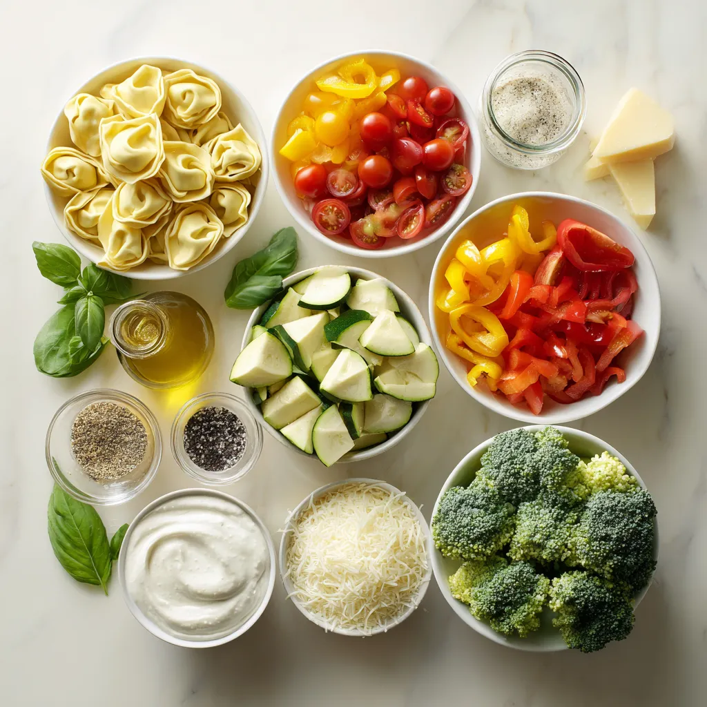 To make creamy tortellini primavera, you need a few fresh ingredients. Here’s what you’ll need:
