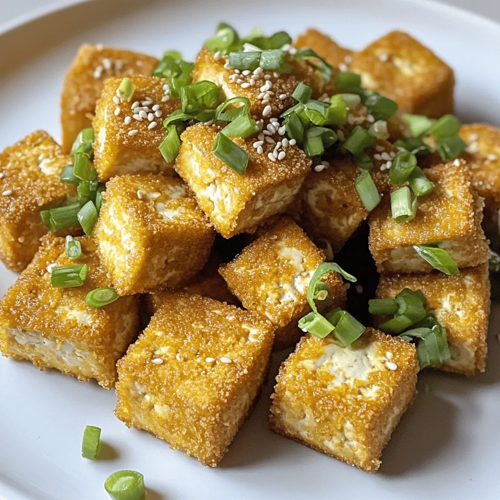 ![- 1 block firm tofu, drained and pressed - 2 tablespoons cornstarch - 2 tablespoons soy sauce - 1 tablespoon sesame oil - 1 teaspoon garlic powder - 1 teaspoon onion powder - 1 teaspoon smoked paprika - Salt and pepper to taste - Chopped green onions - Sesame seeds - Cooking spray (or olive oil spray) To make crispy air fryer tofu, gather these ingredients. Start with firm tofu. Drain and press it well. This step helps remove excess water. Next, you need cornstarch. It creates a crispy layer. Soy sauce and sesame oil add flavor. The garlic and onion powders enhance taste. Smoked paprika brings a subtle smokiness. Don’t forget salt and pepper for seasoning. For garnish, have green onions and sesame seeds ready. You can use cooking spray to prevent sticking. With these ingredients, you can create a tasty dish. Each item plays a role in making your tofu crispy and delicious. Want to see the full recipe? Check out the [Full Recipe]. - Preheat the air fryer to 375°F (190°C). - Cut the pressed tofu into bite-sized cubes, about 1 inch. - In a bowl, mix soy sauce, sesame oil, garlic powder, onion powder, smoked paprika, salt, and pepper. - Add the tofu cubes to the bowl and toss to coat. Let it sit for 10 minutes. - Sprinkle cornstarch over the marinated tofu and toss gently to coat each piece. - Grease the air fryer basket with cooking spray to prevent sticking. - Place the tofu cubes in a single layer in the basket. - Air fry at 375°F for 15-20 minutes. Shake the basket halfway for even cooking. - The tofu is ready when it's golden brown and crispy. This simple process leads to a tasty dish, as shown in the full recipe. - Use firm or extra-firm tofu for best results. - Press tofu for a minimum of 30 minutes for extra crispiness. Choosing the right tofu is key to getting that perfect crunch. Firm or extra-firm tofu holds its shape well during cooking. If you use soft tofu, it may turn mushy. Pressing the tofu removes excess water, which helps it crisp up. You can press it by wrapping it in a clean towel and placing a weight on top. Let it sit for at least 30 minutes. This step is simple yet vital for great texture. - Ensure tofu is in a single layer for even cooking. - Experiment with different air fryer settings if available. When you air fry, arrange the tofu in a single layer. This allows hot air to circulate around each piece. If they overlap, some pieces may stay soft. If your air fryer has settings for different foods, try them! Adjusting the temperature or time can help you find your perfect crisp. - Pair with your favorite dipping sauces. - Serve as an appetizer or add to salads and grain bowls. Crispy air fryer tofu tastes great on its own, but dipping sauces can elevate it! Try soy sauce, sweet chili sauce, or spicy sriracha. You can serve the tofu as an appetizer or toss it in salads and grain bowls. It adds protein and crunch to any meal. Whether you enjoy it plain or dressed up, this tofu is sure to please! For the full recipe, check out the section above. {{image_2}} You can switch up the taste of your crispy air fryer tofu easily. Try using different sauces for marinating. Teriyaki sauce adds a sweet touch, while spicy sriracha gives a fiery kick. You can also mix in fresh herbs like thyme or rosemary. These herbs bring a nice aroma and depth to the dish. Experimenting with flavors keeps your meals fun and exciting. Air frying is great, but you have other options. Baking tofu in the oven works well too. Set your oven to 400°F (200°C) for about 25-30 minutes. This method gives the tofu a nice crunch. Another option is pan-frying. Heat a little oil in a skillet and cook until golden. This method gives the tofu a different texture and flavor. Adjusting your seasonings can make a big difference. You might like more garlic or paprika. Personalize the seasoning levels to fit your taste. If you love spice, add chili flakes for a hot kick. This small change can elevate your dish and make it truly your own. You can find the full recipe [here](#). To store leftover tofu, place it in an airtight container. This keeps it fresh. I recommend eating it within three days. Tofu can lose its flavor and texture if kept longer. To reheat tofu, use the air fryer or oven. This helps keep the crispiness. Avoid using the microwave. Microwaving can make the tofu soggy and unappealing. Can tofu be frozen? Yes, it can. However, the texture may change after freezing. It’s best to freeze tofu before cooking it. Press and cube the tofu first for best results. This way, you prepare it well for cooking later. You can bake or pan-fry tofu. For baking, preheat your oven to 400°F (200°C). Cut the tofu into cubes and coat them with oil and cornstarch. Spread the cubes on a baking sheet. Bake for 25-30 minutes until golden. For pan-frying, heat oil in a skillet. Add the tofu cubes and cook until crispy on all sides. Both methods yield tasty, crispy tofu. Silken tofu is softer and won't crisp as well. It may break apart easily. If you want to use silken tofu, try using it in soups or sauces instead. For crispy tofu, stick with firm or extra-firm varieties. They hold their shape and absorb flavors better. Try these tasty sauces: - Soy sauce mixed with sesame oil - Spicy sriracha mayo - Sweet chili sauce - Peanut sauce These sauces add flavor and make the tofu shine. You can mix and match based on your taste! For more ideas, check the Full Recipe. In this blog post, I shared tips for making crispy air fryer tofu. We discussed key ingredients like firm tofu, cornstarch, and flavorful seasonings. You learned how to marinate and cook the tofu for the best crunch. I also included storage tips and variations to keep your meals exciting. Crispy tofu is easy to prepare and very versatile. Try it with different sauces or in your favorite dishes. Enjoy your cooking journey and savor every bite of your delicious creations!](https://recipespursuit.com/wp-content/uploads/2025/06/3f468af3-b03f-47c4-81c2-e81c344de5b9-76