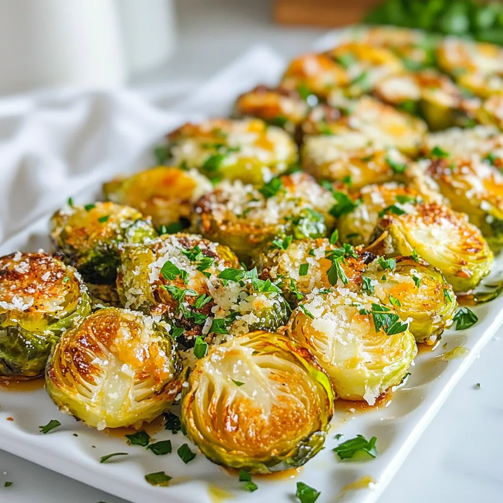 When serving, use a large white platter. This makes the golden Brussels sprouts pop! Add a sprinkle of extra Parmesan for a touch of elegance. Fresh parsley on top adds color and freshness, making it more inviting for guests.