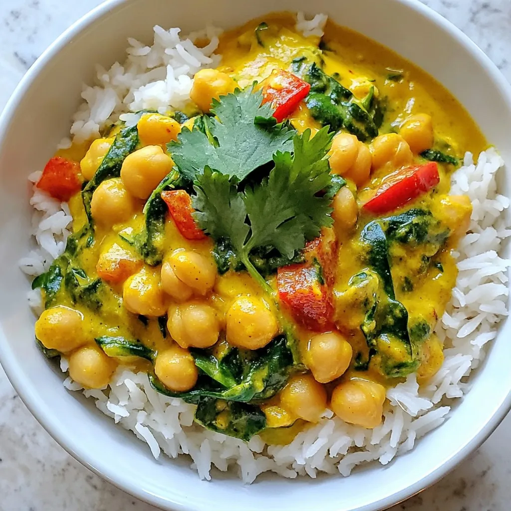 A delightful and creamy chickpea curry with coconut milk and vibrant spices.