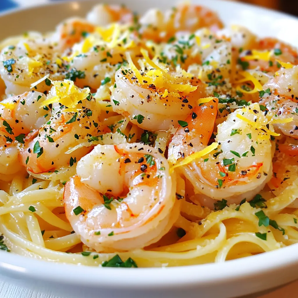 - 1 lb large shrimp, peeled and deveined - 8 oz linguine or spaghetti - 4 tablespoons unsalted butter - 3 tablespoons olive oil - 4 cloves garlic, minced - 1 teaspoon red pepper flakes - 1 lemon, juiced and zested - 1/4 cup fresh parsley, chopped - Salt and pepper to taste - Grated Parmesan cheese (optional, for serving) Gather these fresh ingredients for a tasty meal. Start with large shrimp. They add a sweet flavor and nice texture. Use linguine or spaghetti for the perfect pasta base. Unsalted butter gives a rich taste. Olive oil adds depth. Next, garlic brings a strong aroma and flavor. Red pepper flakes add just the right kick. Use a fresh lemon. Its juice brightens the dish, while zest adds more lemony goodness. Fresh parsley gives a lovely color and taste. Don’t forget salt and pepper to season. If you like, sprinkle Parmesan cheese on top. It melts well and adds creaminess. Each ingredient works together to create a delightful meal. {{ingredient_image_1}} - Bring a large pot of salted water to boil. - Add linguine or spaghetti and cook until al dente. - Reserve 1/2 cup of the pasta water, then drain and set aside. - In a large skillet, heat olive oil and 2 tablespoons of butter over medium heat. - Once the butter melts, add minced garlic and red pepper flakes. - Add the shrimp to the skillet. - Season the shrimp with salt and pepper. - Cook for about 2-3 minutes on each side until shrimp are pink and opaque. - Reduce heat to low. - Add lemon juice, lemon zest, and reserved pasta water to the skillet. - Stir to combine. - Add cooked pasta and remaining 2 tablespoons of butter. - Toss everything together until well combined and the butter melts. - Stir in chopped parsley. - Adjust seasoning if necessary. - Plate the shrimp scampi. - Garnish with additional parsley and Parmesan cheese if desired. To perfect the flavor, adjust the red pepper flakes based on your heat preference. Start with one teaspoon. If you like it spicy, add more. Fresh ingredients make a big difference too. Use fresh garlic and parsley for the best taste. Avoid overcooking shrimp. Cook them just until they turn pink and opaque, about 2-3 minutes on each side. For pasta, cook it until al dente. This means it should be firm to the bite. Reserve some pasta water before draining. It helps to make the sauce creamy. Pair shrimp scampi with a side salad or garlic bread. A fresh green salad balances the dish. As for wine, a crisp white wine works best. A Sauvignon Blanc or Pinot Grigio complements the flavors nicely. Enjoy your meal with these simple pairings for a complete experience. Pro Tips Use Fresh Shrimp: Fresh shrimp will enhance the flavor and texture of your dish. If using frozen shrimp, ensure they are fully thawed and patted dry before cooking. Perfect Pasta: To achieve al dente pasta, follow the package instructions closely and taste it a minute or two before the suggested cooking time is up. Adjust Heat Level: The red pepper flakes can be adjusted based on your heat preference. Start with a small amount, and add more if you like it spicier! Butter for Richness: Using both butter and olive oil gives you the best of both worlds—richness from the butter and a higher smoke point from the oil, preventing the butter from burning. {{image_2}} You can make this dish gluten-free. Simply swap the linguine or spaghetti for gluten-free pasta. Many brands offer great options. Look for ones made from rice, quinoa, or chickpeas. Cook them just like regular pasta. This way, everyone can enjoy the meal! Want to boost the dish's nutrition? Add some veggies! Spinach is an excellent choice. Toss in a handful during the last minute of cooking. It wilts quickly and adds color. Cherry tomatoes also work well. Halve them and add them when you cook the shrimp. They add a sweet burst of flavor. If you’re not in the mood for shrimp, no problem! You can use scallops instead. They cook quickly and have a nice, sweet taste. Chicken is another option. Just cut it into bite-sized pieces and cook until golden brown. Both choices will still match the garlic butter sauce perfectly! To store your leftover shrimp scampi, first let it cool to room temperature. Next, place it in an airtight container. This helps keep it fresh. You can store it in the fridge for up to three days. If you plan to eat it later, avoid leaving it out for too long. Keeping it chilled ensures safety and flavor. When reheating shrimp scampi, I recommend using a skillet. This method keeps the shrimp juicy. Heat the skillet over medium-low. Add a splash of water or broth to prevent sticking. Gently stir the shrimp for about five minutes. You can also use the microwave. If you choose this, cover the dish with a damp paper towel. Heat in short bursts, stirring in between, until warm. Yes, you can freeze shrimp scampi! To do this, let it cool completely. Then, place it in a freezer-safe container. Make sure to remove as much air as possible. It will keep well for up to three months. When ready to eat, thaw it overnight in the fridge. Reheat it gently on the stove or in the microwave. The shrimp may lose some texture, but the flavor will still be great. The best pasta for shrimp scampi is linguine or spaghetti. Both types hold sauce well and complement the shrimp. You can also use fettuccine or angel hair if you prefer. They all cook quickly and make a tasty dish. Yes, you can use frozen shrimp. Just make sure to thaw them first. You can soak them in cold water for about 15-20 minutes. Once thawed, peel and devein if needed. Using frozen shrimp saves time and works well in this recipe. Garlic butter shrimp scampi has a mild heat. The red pepper flakes add flavor without being too hot. You can adjust the spice by adding less or more flakes. For no heat, simply leave them out. You can serve shrimp scampi with a simple green salad or garlic bread. Both pair well with the rich flavors. Steamed vegetables or a light risotto also make great sides. They balance the meal and ad