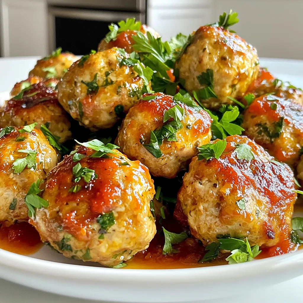 Delicious chicken meatballs infused with garlic and fresh herbs, perfect for dipping in marinara sauce.