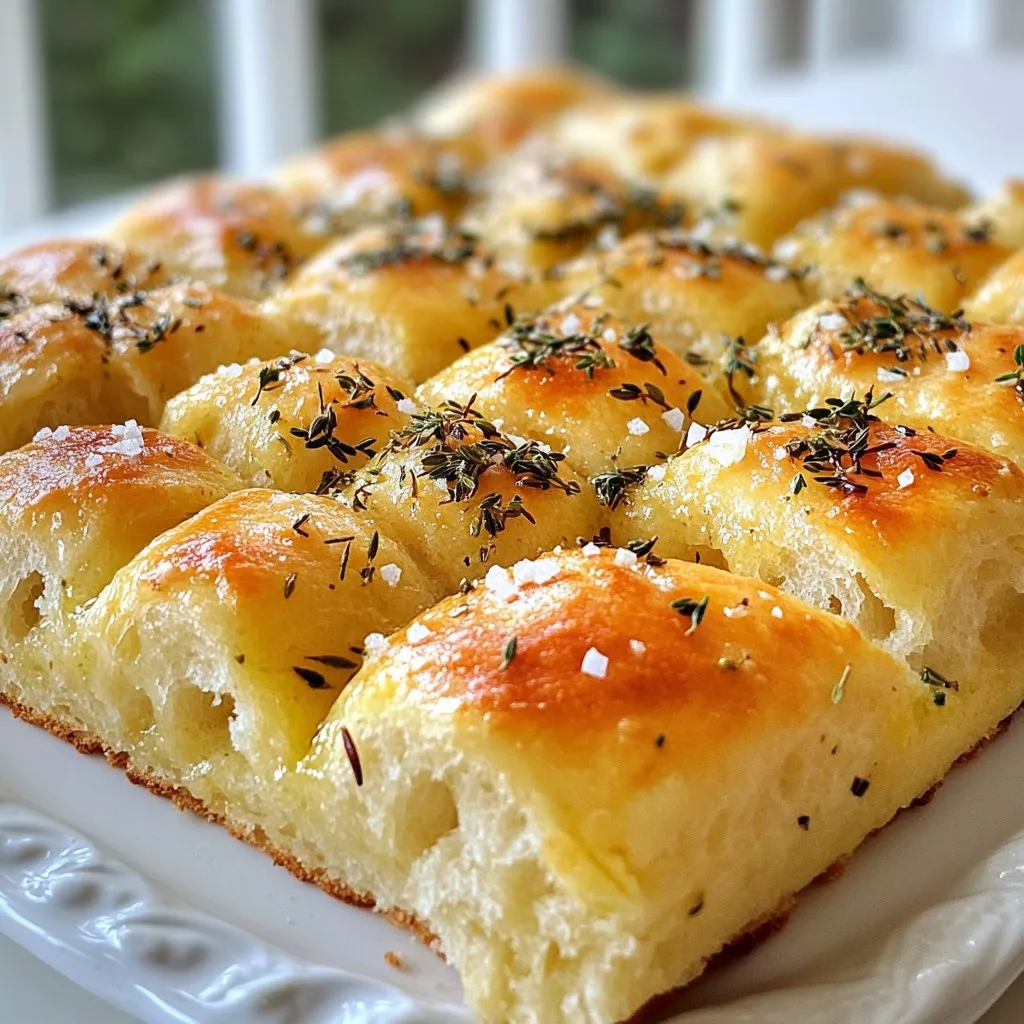 A delicious and aromatic focaccia bread infused with garlic and herbs.