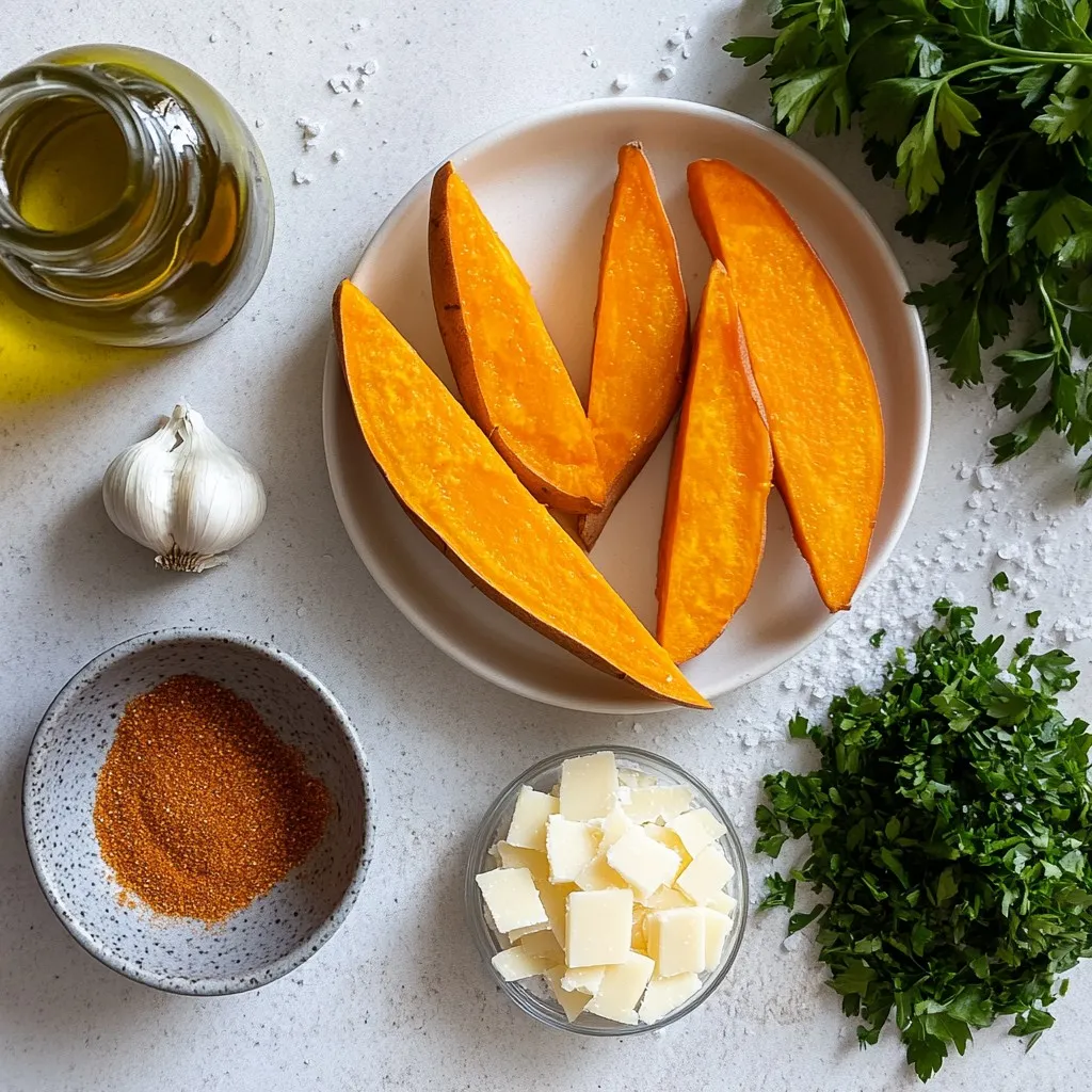 To make Garlic Parmesan Sweet Potato Wedges, you will need: