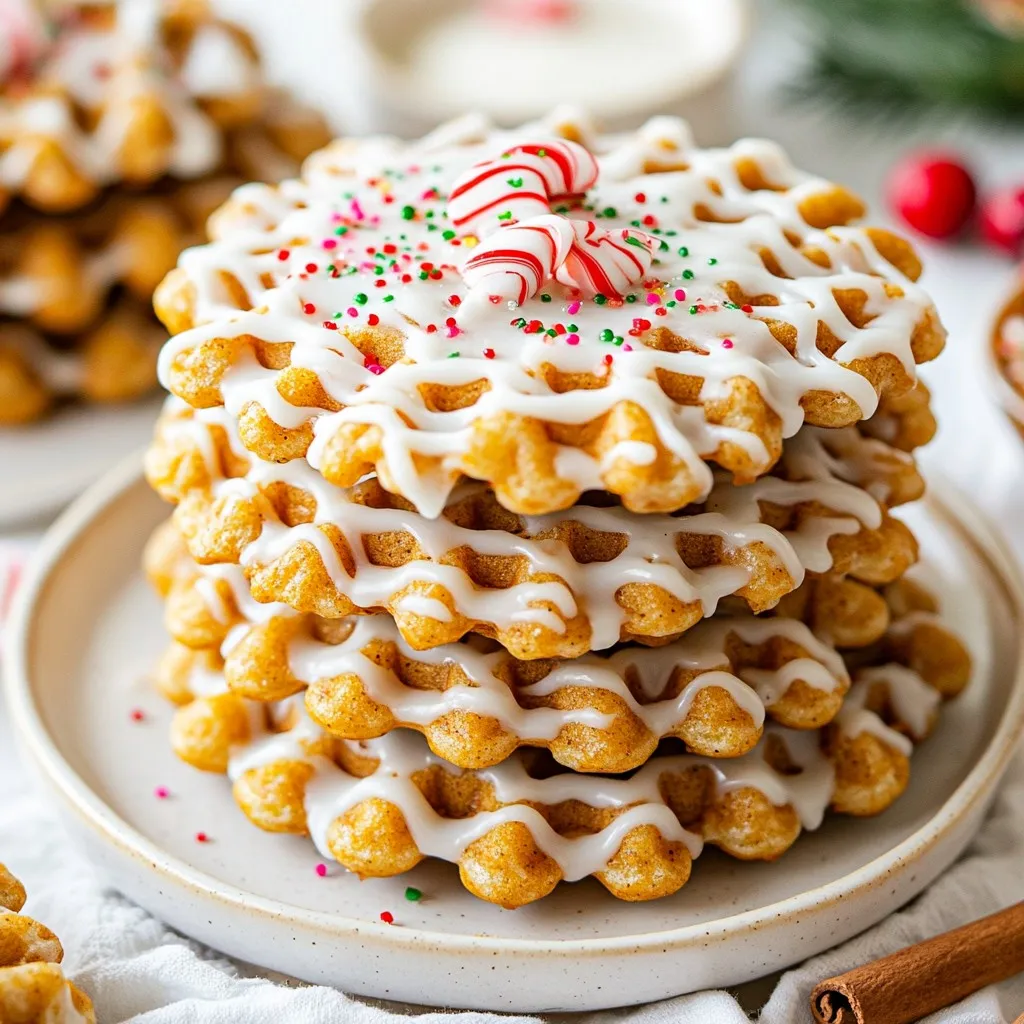 Decorate: Drizzle the icing over the cooled waffle cookies. For added flair, sprinkle crushed candy canes or colorful sprinkles on top.
