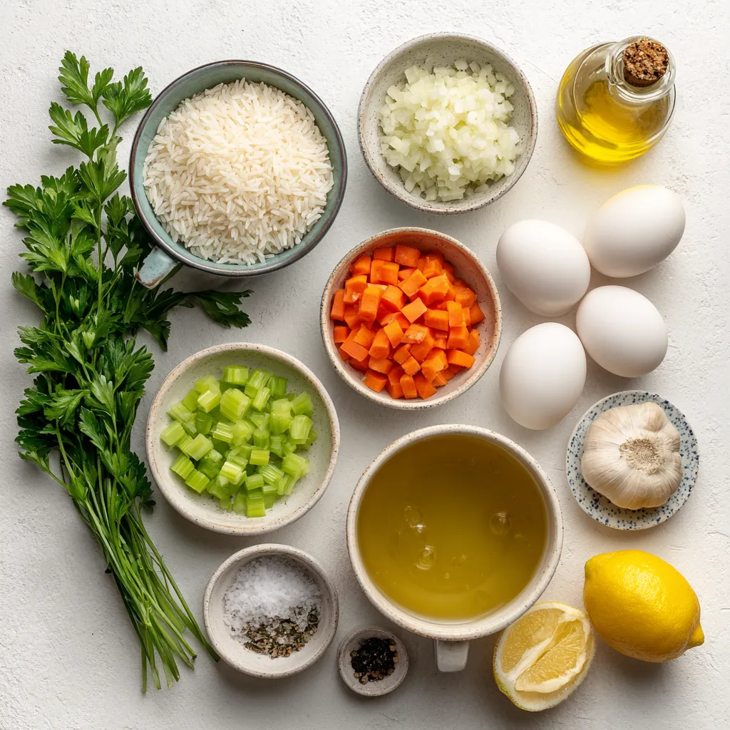 A comforting and tangy soup made with jasmine rice, vegetables, and a lemon-egg mixture.