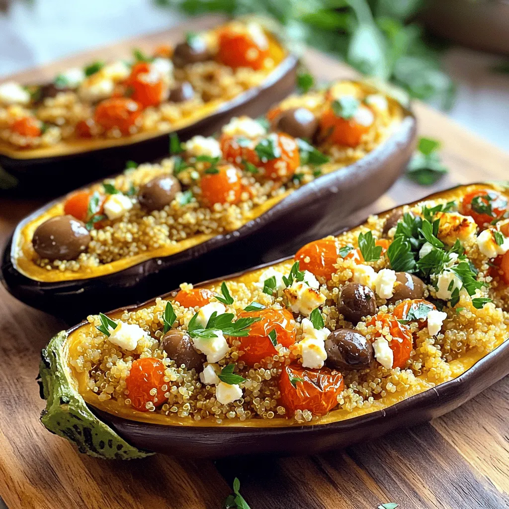 These ingredients blend together to create a dish that is both vibrant and satisfying. The eggplants serve as perfect boats, holding the rich filling. Each bite combines the nutty quinoa, tangy feta, and savory olives. You can easily find all these items at your local grocery store or farmer’s market. Enjoy the process of picking out fresh ingredients; it makes the dish that much better!