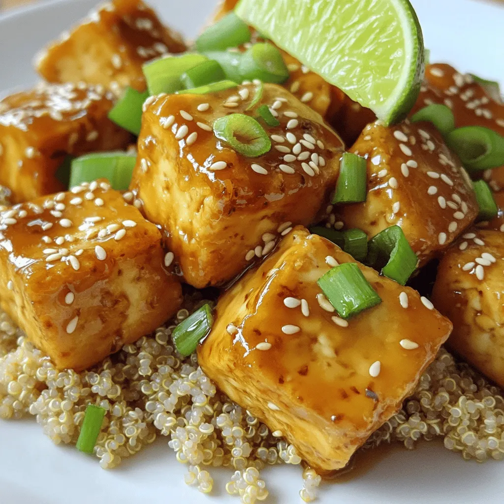 Now, let’s talk about garnishes. Sesame seeds give a nice crunch and a pop of flavor. Green onions add freshness and color. Lastly, serve your tofu over cooked rice or quinoa. This helps soak up all that delicious sauce. Enjoy every bite of this savory and flavorful meal!
