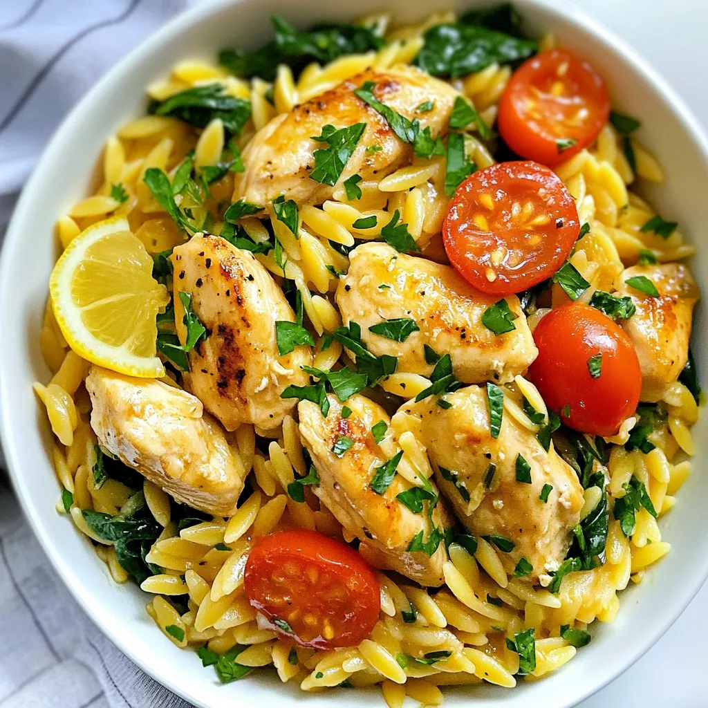 A delicious one-pan meal featuring chicken, orzo pasta, and fresh herbs, all infused with lemon flavor.