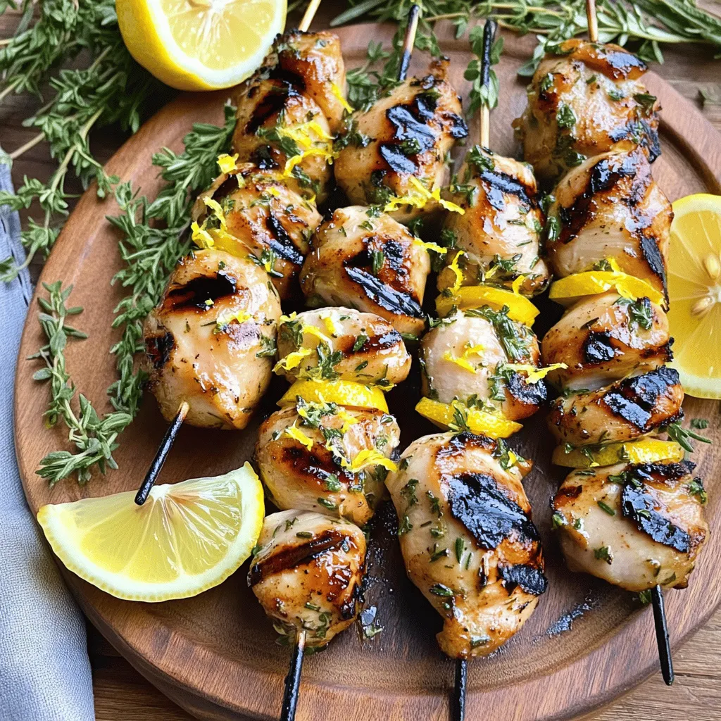After grilling, remove the skewers and let them rest for a few minutes. This helps keep the chicken juicy and tender. Serve them up and enjoy your flavorful lemon herb chicken skewers!