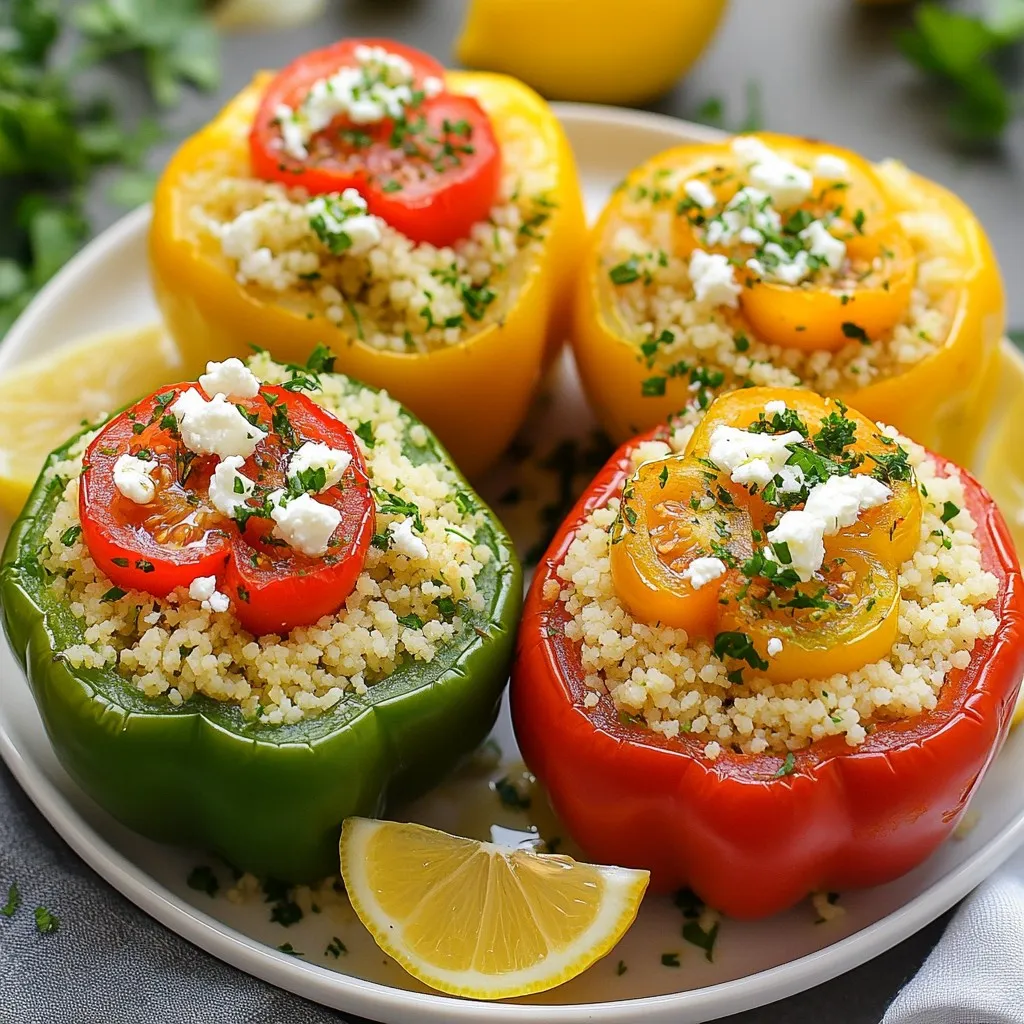 A delicious and healthy dish featuring bell peppers stuffed with lemon herb couscous.