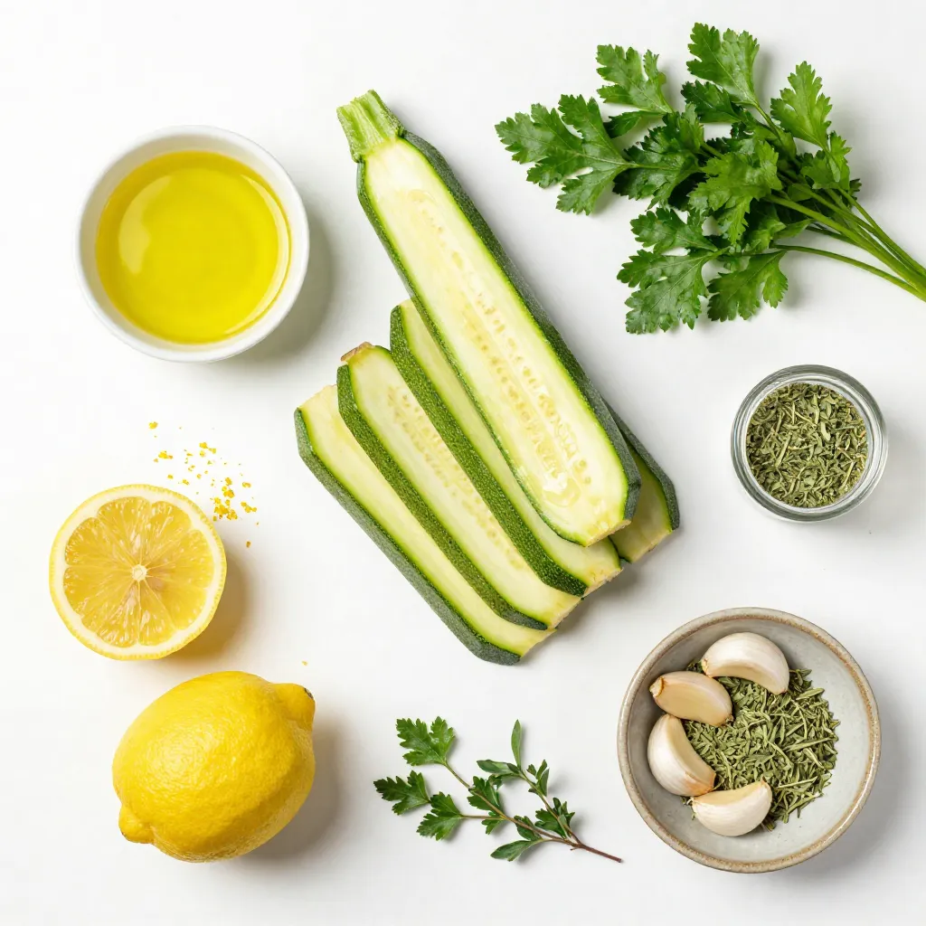 When I make Lemon Herb Grilled Zucchini, I focus on fresh and simple ingredients. The main star is the zucchini. Choose medium zucchinis for the best texture. Slice them into long strips, about a quarter-inch thick. This thickness allows them to grill well without falling apart.