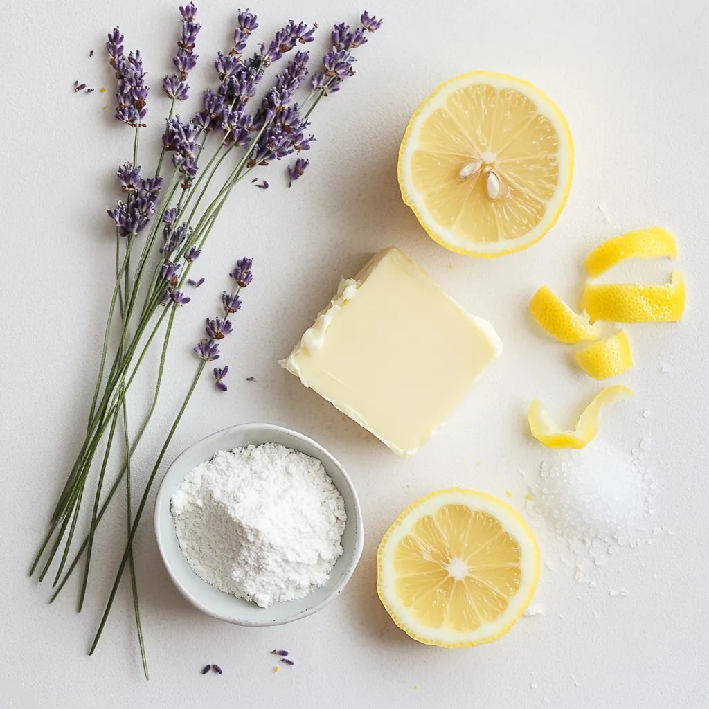 Making Lemon Lavender Shortbread is easy and fun. Start by gathering all your ingredients. You will need unsalted butter, powdered sugar, culinary lavender, lemon zest, lemon juice, all-purpose flour, and salt. Preheat your oven to 350°F (175°C) and line a baking sheet with parchment paper. This step helps the cookies bake evenly.