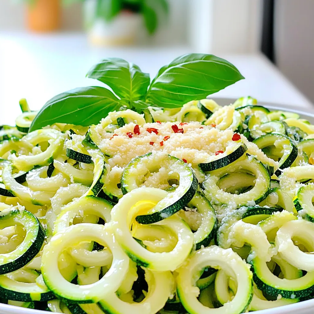 Zucchini noodles are the star here. They add a fresh and light feel. Olive oil gives a rich base, while garlic adds an amazing aroma. Red pepper flakes bring a nice kick, but you can skip them if you prefer. Parmesan cheese gives a creamy finish that makes this dish special. Finally, fresh basil adds a pop of color and flavor.
