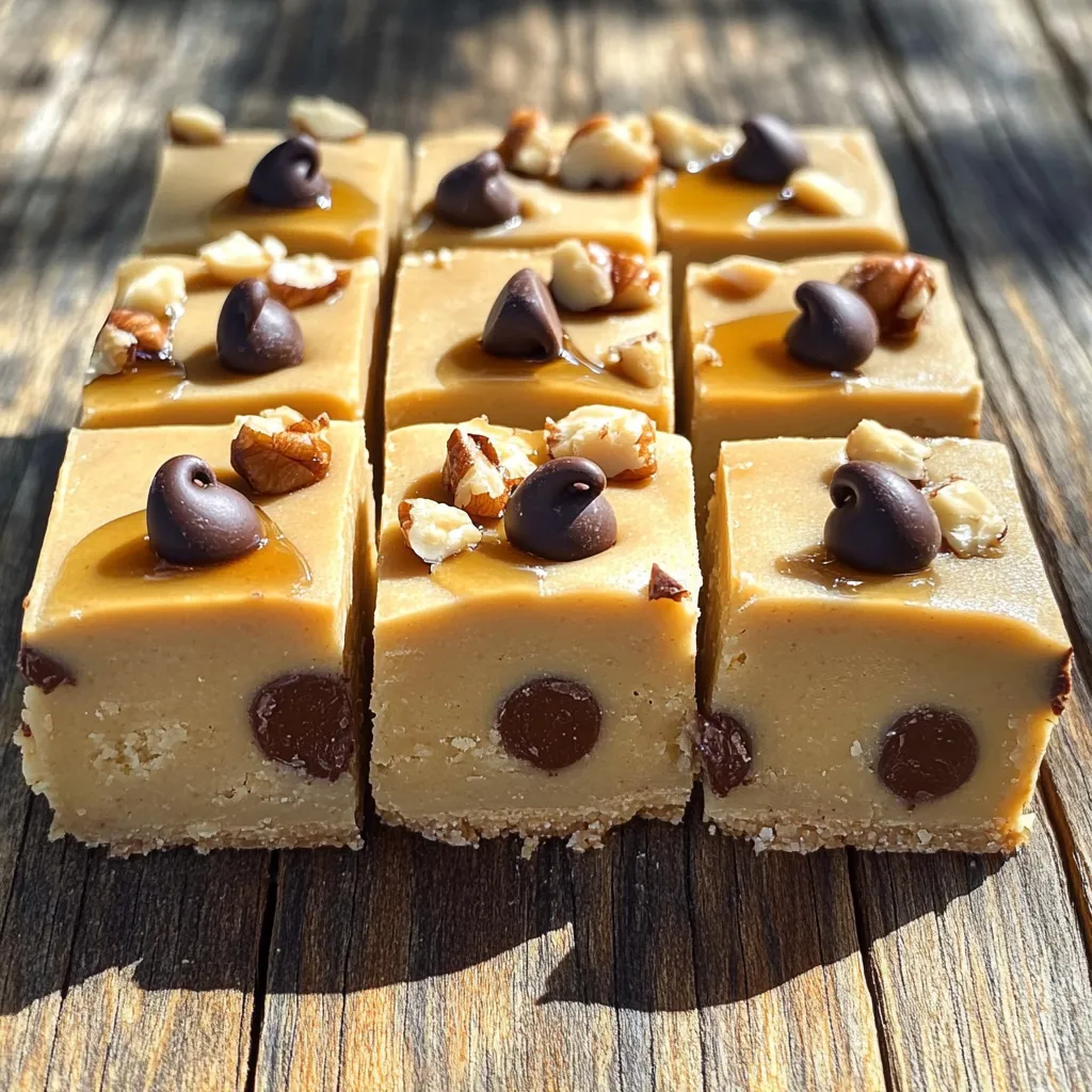 To keep your No-Bake Chocolate Chip Cookie Dough Bars fresh, use an airtight container. This helps prevent moisture from making them soggy. Place the bars in the fridge right after cutting them. If you stack the bars, put parchment paper between layers. This keeps them from sticking together.