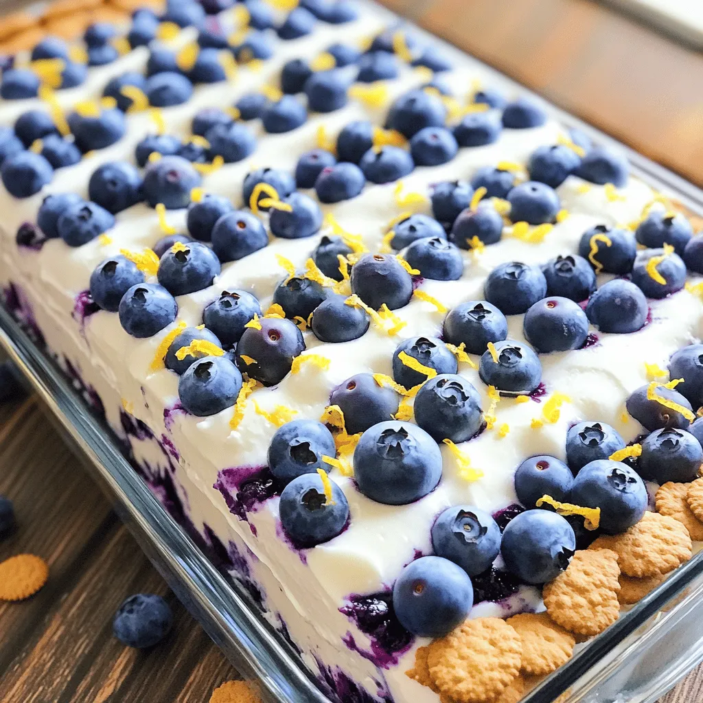 Each ingredient plays a key role in building layers of flavor and texture. The cream cheese gives the cake a rich, creamy base. Heavy whipping cream adds lightness and helps it hold shape. The powdered sugar sweetens the mix just right. Lemon zest and juice brighten the flavor, making every bite refreshing. Vanilla extract rounds out the taste, while fresh blueberries add natural sweetness and color. Finally, graham crackers provide the perfect crunchy layer that contrasts with the creamy filling. This mix of ingredients creates a delightful treat that is easy to share and enjoy.