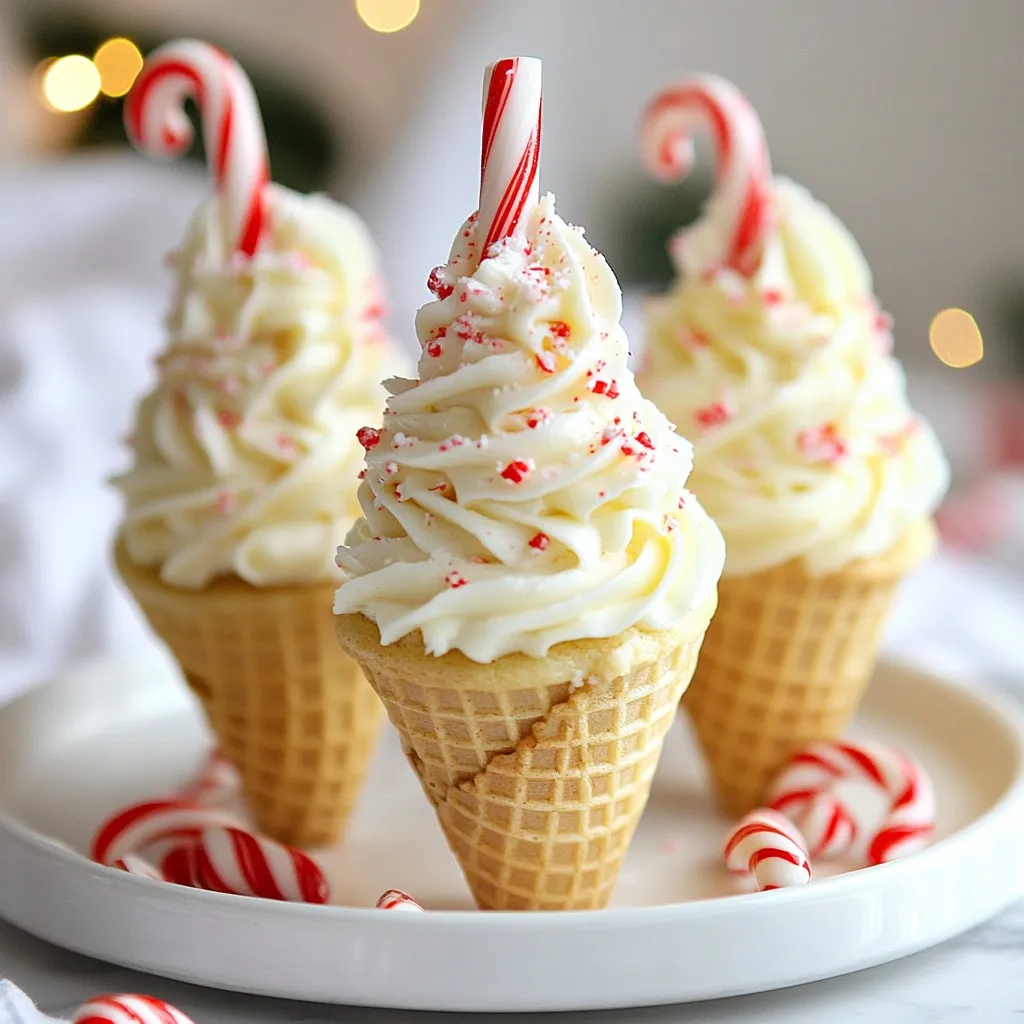 Festive cupcake cones with a peppermint twist, perfect for holiday celebrations.