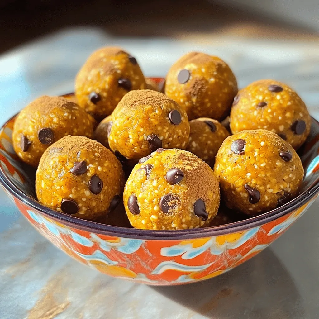 - 1 cup rolled oats - 1/2 cup canned pumpkin puree - 1/4 cup almond butter (or any nut butter) - 1/4 cup honey or maple syrup - 1 teaspoon vanilla extract - 1 teaspoon pumpkin pie spice - 1/4 teaspoon salt - 1/3 cup chia seeds - 1/2 cup mini chocolate chips or chopped nuts (optional) In making Pumpkin Spice Energy Bites, you need simple and healthy ingredients. Start with rolled oats, which give a great base. The canned pumpkin puree adds moisture and flavor. Almond butter or any nut butter brings in protein and creaminess. You can choose honey or maple syrup for sweetness. Don’t forget the vanilla extract for an extra flavor boost. Pumpkin pie spice is key; it gives that warm, cozy flavor we all love. A pinch of salt balances the sweetness. Chia seeds add a nice crunch and boost nutrition. Lastly, mini chocolate chips or chopped nuts are optional. They can make your bites even more fun! These ingredients come together quickly. They create a tasty treat that fuels your day. You can enjoy them as a snack or a quick breakfast. Plus, you can store them in your fridge for a week. This makes them a great go-to when you need energy! Start by mixing the main ingredients. In a large bowl, combine: - 1 cup rolled oats - 1/2 cup canned pumpkin puree - 1/4 cup almond butter (or any nut butter) - 1/4 cup honey or maple syrup - 1 teaspoon vanilla extract Stir these together until they blend well. Next, add the spices and chia seeds. Include: - 1 teaspoon pumpkin pie spice - 1/4 teaspoon salt - 1/3 cup chia seeds Mix until everything looks even. If you want some extra crunch, fold in: - 1/2 cup mini chocolate chips or chopped nuts (optional) Now, it’s time to form the energy bites. Use your hands to roll the mixture into small balls. Aim for about 1 inch in diameter. Place these balls on a baking sheet lined with parchment paper. Make sure they have space between them. Once all the mixture is rolled into balls, chill them in the fridge. Refrigerate for at least 30 minutes. This helps them firm up nicely. For storage, keep them in an airtight container. They last up to a week in the fridge. If you want to save them for longer, freeze them. This way, you can enjoy them anytime! To get the right consistency for your Pumpkin Spice Energy Bites, mix all your ingredients well. The blend should be sticky but not too wet. If it feels too dry, add a splash of water or more nut butter. If it’s too wet, sprinkle in more oats or chia seeds. This way, you can adjust the mixture to your liking. These energy bites look great when served in a colorful bowl. You can also place them on a platter. For a special touch, sprinkle a little extra pumpkin pie spice on top. Pair them with a warm drink like coffee or tea. They also go well with yogurt or fruit for a fun snack. Feel free to swap ingredients based on what you have. If you don’t have almond butter, use peanut or sunflower seed butter. For sweeteners, you can use maple syrup or agave nectar. You can also change the spice levels to suit your taste. If you love more spice, add a bit more pumpkin pie spice or cinnamon. Adjusting these elements keeps the recipe fun and fresh! {{image_2}} You can change the flavor of your energy bites easily. Try adding seasonal spices like cinnamon or nutmeg. These spices bring warmth and depth to the bites. You can also mix in cocoa powder for a chocolate twist. This gives a rich taste that pairs well with pumpkin. Another option is to use flavored nut butters. Try cashew or hazelnut butter instead of almond butter. Each nut butter adds its own unique flavor. You can even switch up the sweetener. Use maple syrup or agave syrup for a different taste. If you want vegan energy bites, simply swap honey for maple syrup. This keeps the bites sweet and plant-based. You can also use sunflower seed butter for a nut-free option. Both changes make these bites great for everyone. For a nut-free version, use pumpkin seeds in place of nuts. They add crunch and a boost of nutrients. Always check labels for allergens if you are cooking for others. Want to make your energy bites even healthier? Add protein powder to the mix. This will boost your protein intake and keep you full longer. You can use any flavor of protein powder you like. You can also mix in superfoods like hemp seeds or flaxseeds. These add fiber and healthy fats. For an extra crunch, sprinkle some on top before chilling. These small changes can make your snack more powerful. To keep your Pumpkin Spice Energy Bites fresh, store them in an airtight container. This helps keep moisture out and flavor in. Place the container in the refrigerator, where it stays cool. The cool air slows spoilage and keeps the bites tasty. Avoid leaving them out at room temperature for long periods. These energy bites last about a week in the refrigerator. If you want to store them for longer, freeze them. When frozen, they can last up to three months. Just make sure to wrap them well or use a freezer-safe container to prevent freezer burn. To check if your energy bites are still good, look for changes in smell or texture. If they smell sour or feel sticky, they might be spoiled. Always trust your senses. If something seems off, it's best to toss them out. Keeping an eye on their freshness ensures you enjoy them at their best. Pumpkin Spice Energy Bites are small, tasty snacks. They mix oats, pumpkin, and spices. The bites provide energy and flavor in each chew. I love making them when I want a quick treat. They are perfect for busy days or after workouts. You can easily make them at home. They are also great for kids as a healthy snack. Yes, you can freeze Pumpkin Spice Energy Bites. To freeze them, place the bites in a single layer on a baking sheet. Once they are frozen, transfer them to an airtight container. They will last in the freezer for about three months. To thaw, just leave them in the fridge overnight. You can also enjoy them straight from the freezer for a cool snack. You can make these b