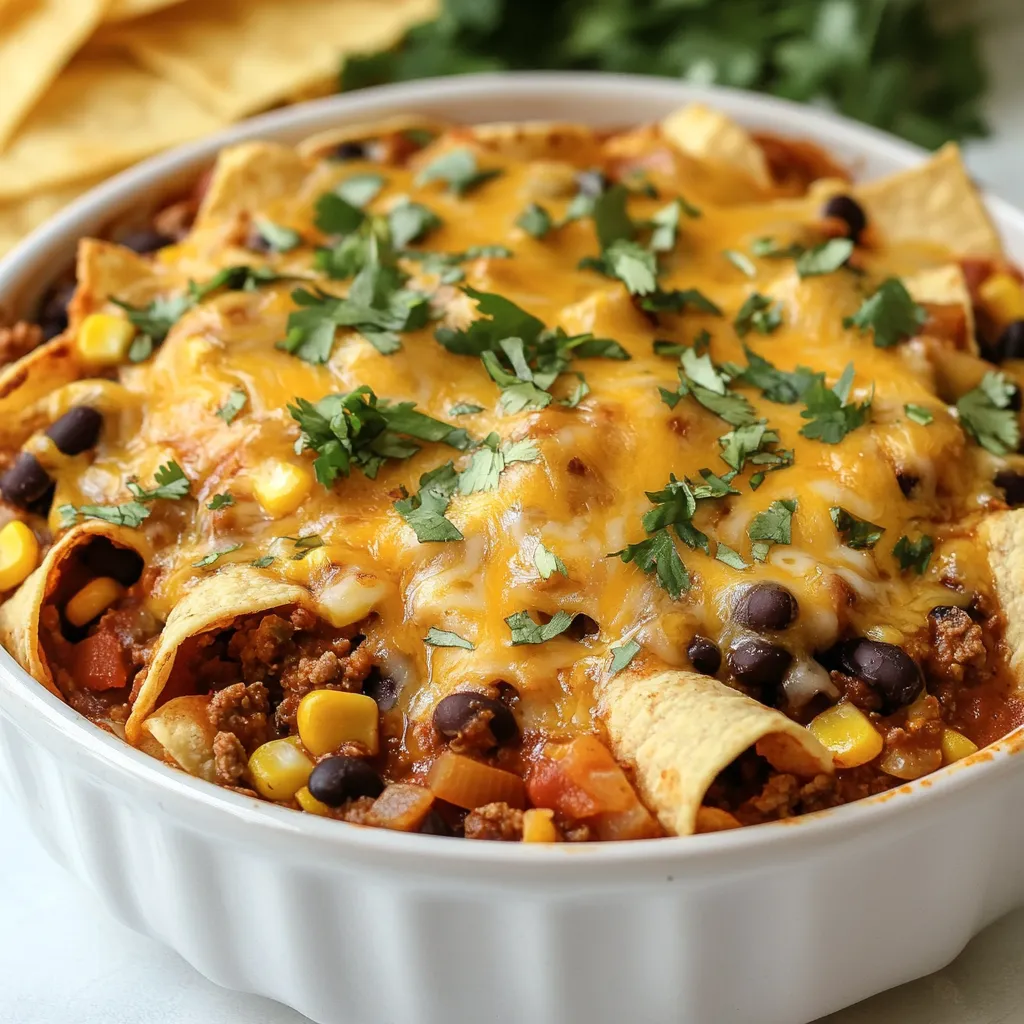 Fold in the tortilla strips gently into the beef mixture, ensuring they soften slightly in the sauce.
