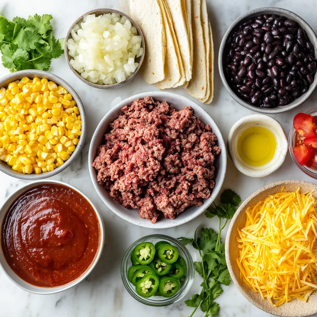 These ingredients create a hearty and rich flavor. The ground beef serves as the base, while the beans add protein. Diced tomatoes bring freshness, and the corn adds a sweet crunch. Taco seasoning gives it that classic flavor we love.