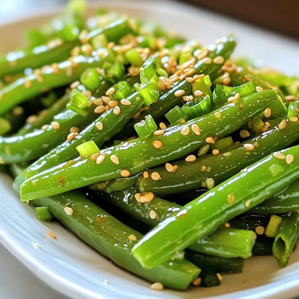 For presentation, arrange the green beans in a nice dish. Sprinkle sesame seeds on top for crunch. Add scallions for a fresh touch. A colorful plate makes the dish even more inviting.