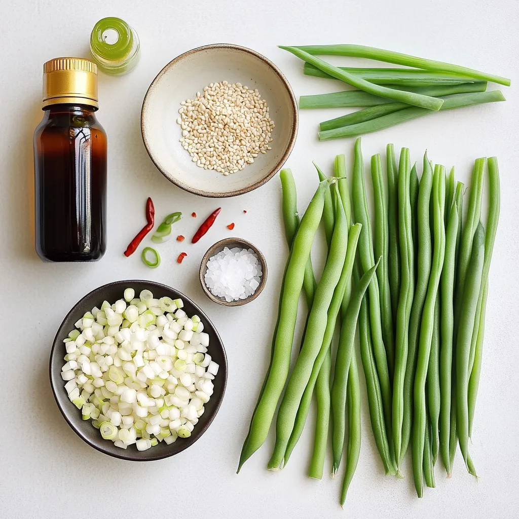 The first step to making sesame garlic green beans is gathering the right ingredients. Fresh green beans are the star of this dish. They add a crisp texture and bright flavor. I love using sesame oil, as it gives a wonderful nutty taste. Minced garlic adds depth and aroma.