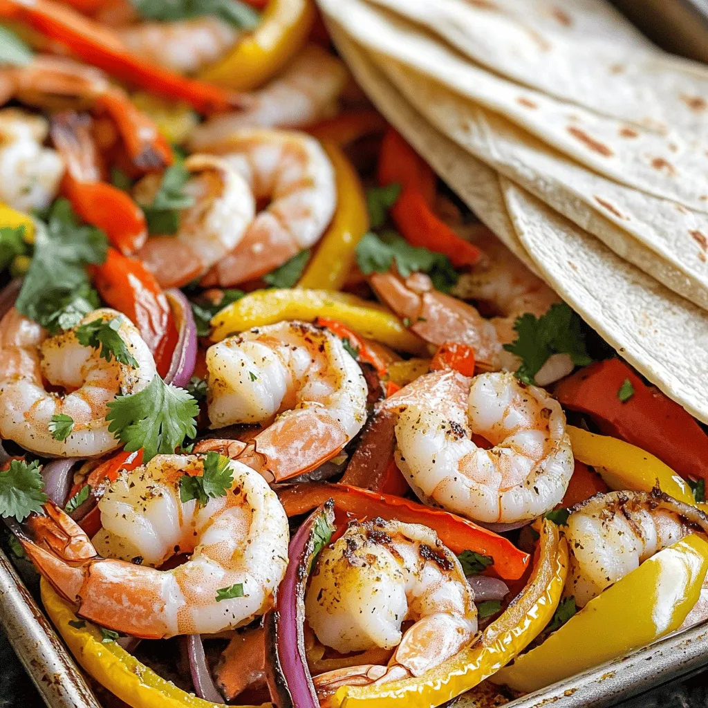 Gather these ingredients to make your Sheet Pan Garlic Herb Shrimp Fajitas. The shrimp provide a tender protein, while the peppers and onions add crunch and color. The seasoning mix brings bold flavor that dances on your taste buds. Fresh cilantro adds a bright finish, and warm tortillas hold everything together. With these ingredients, you can create a meal that is both easy and delicious.