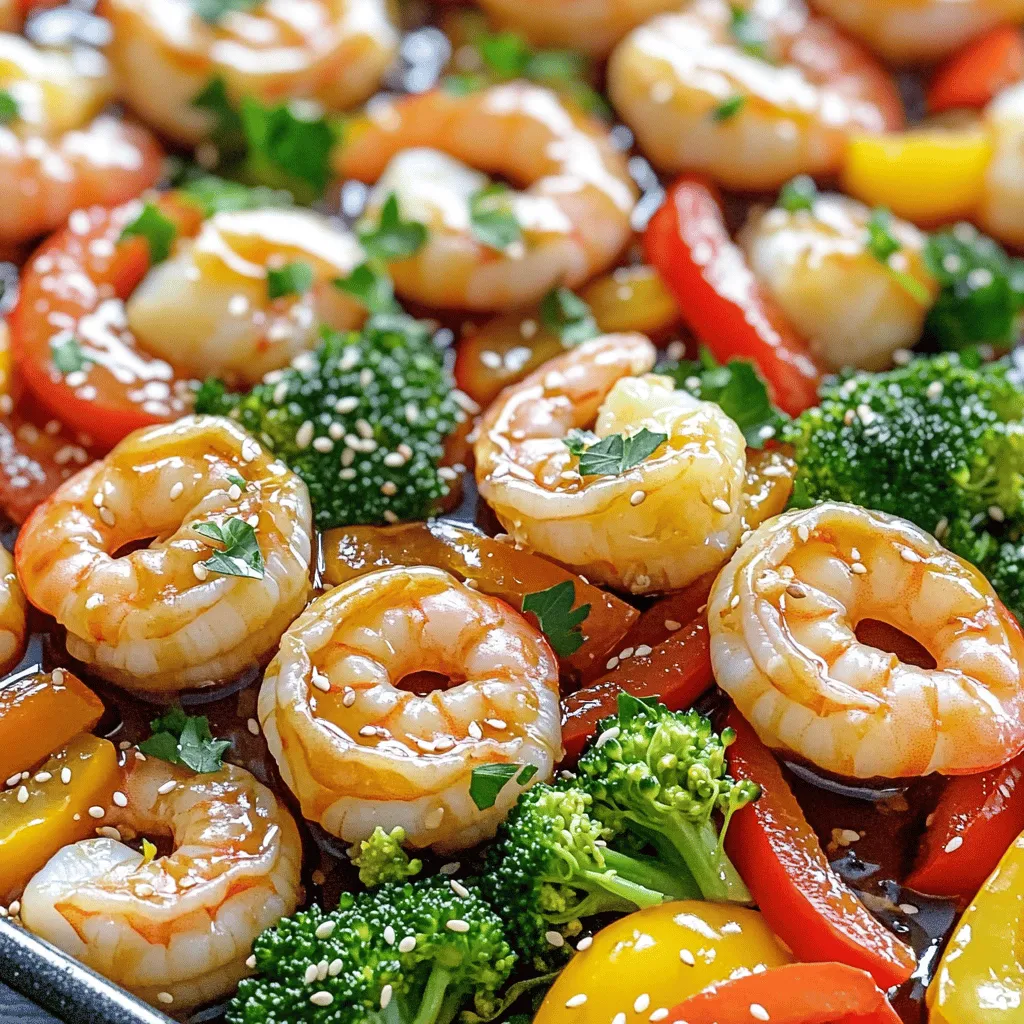 To make Sheet Pan Honey Garlic Shrimp, gather these ingredients. First, choose large shrimp. They should be fresh, peeled, and deveined. Next, get some honey for sweetness. Low sodium soy sauce adds flavor without too much salt. Minced garlic and grated ginger give the dish a nice kick. Olive oil helps everything cook evenly.